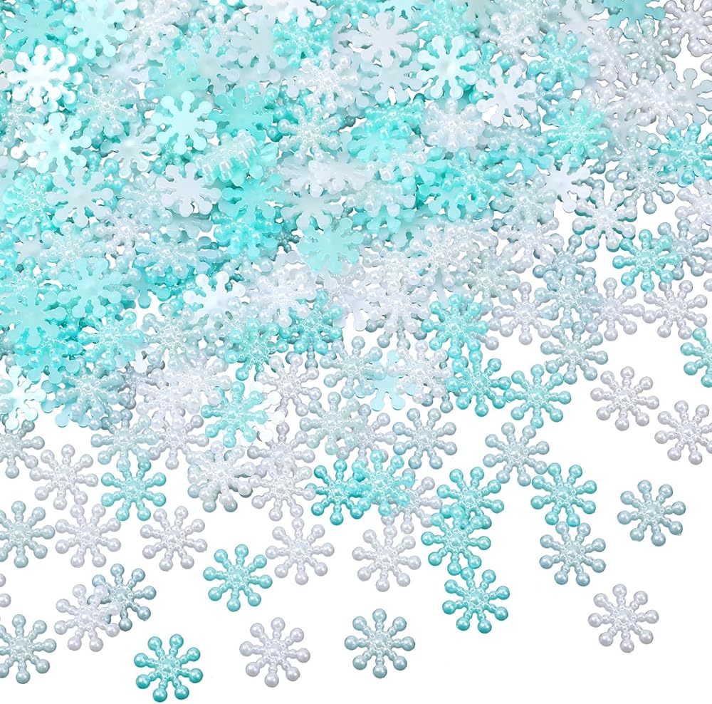 NOVWANG Christmas Snowflakes Decorations, 300Pcs Glitter ABS Pearl Like Snowflakes White Blue Winter Party Table Confetti Decors Jewelry Embellishment Snowflakes for Craft DIY Gifts Garland Ornaments