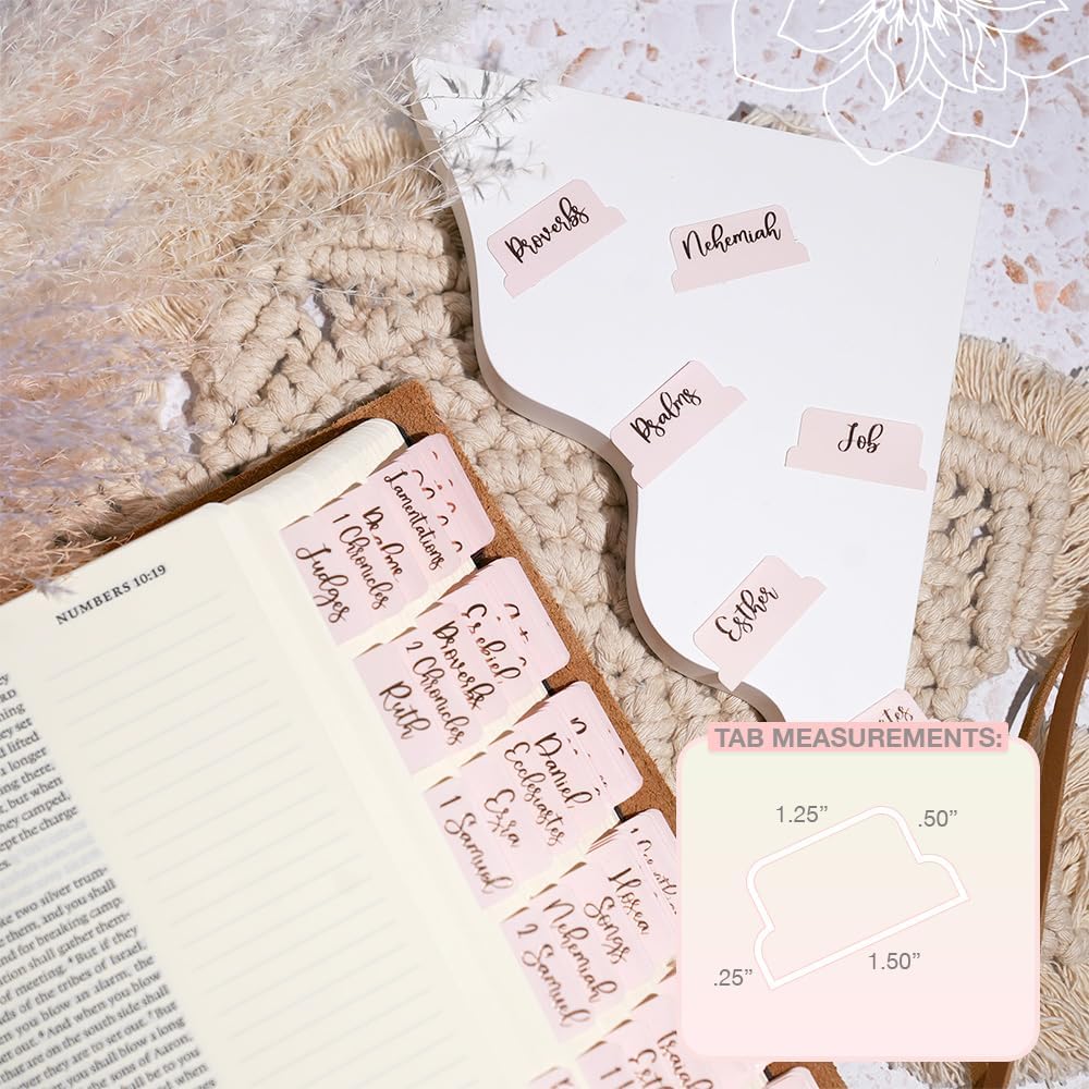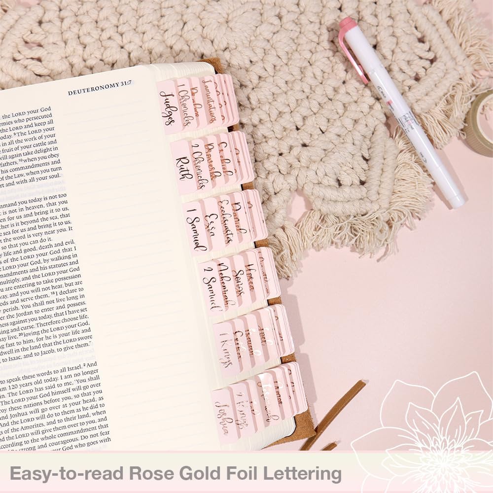 Idyllic Grace - Bible Tabs, Rose Gold Foil Lettering, Bible Journaling, Study Tool, New and Old Testament, Christian, Catholic, Apocrypha, 90 Tabs, Indexing, Glossy Laminated, Durable - Be The Light