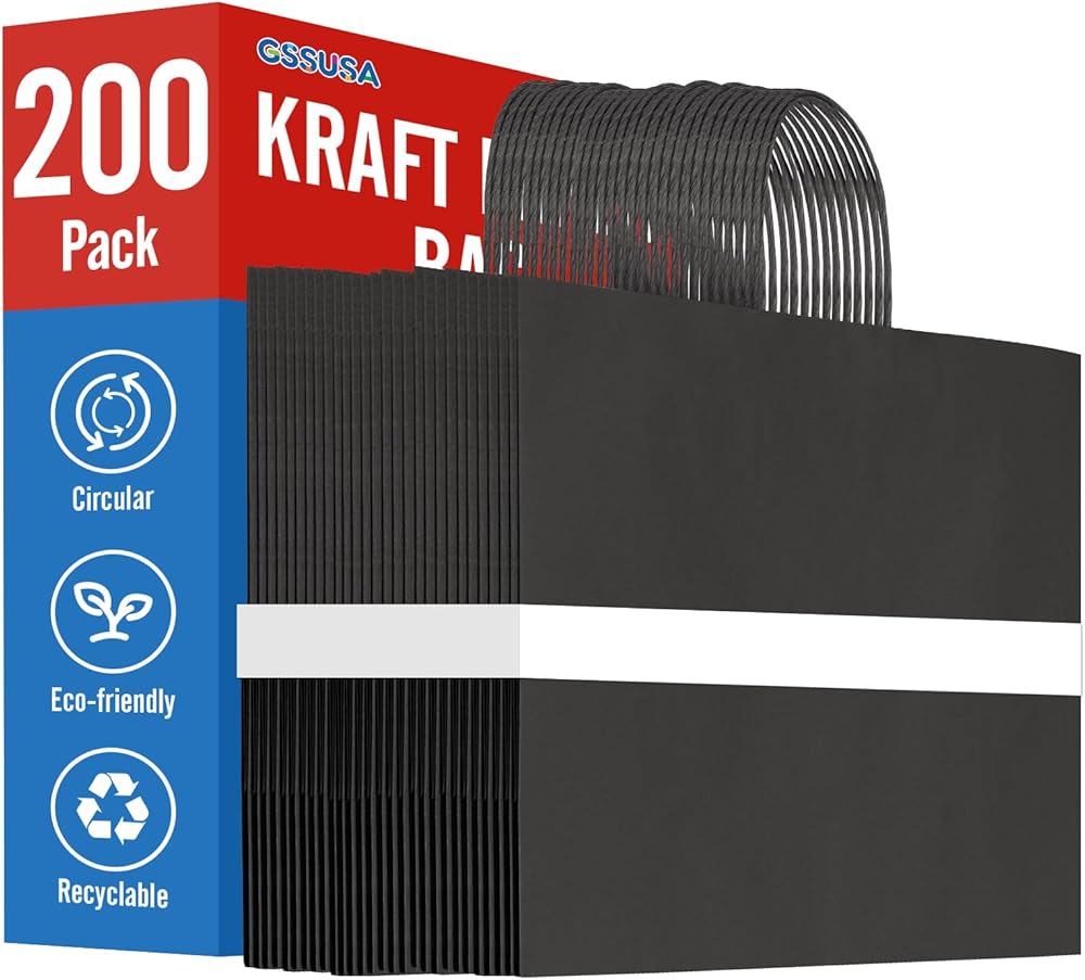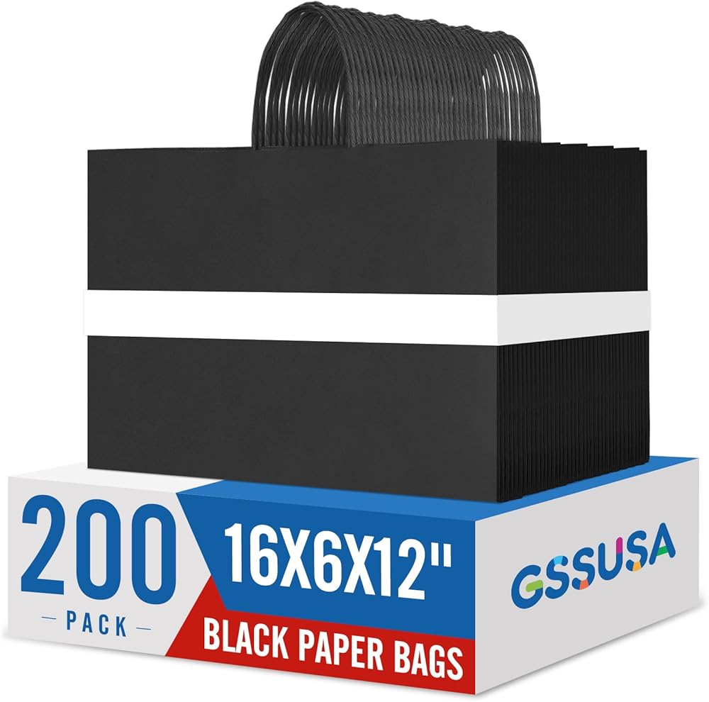 GSSUSA Large Paper Bags with Handles16x6x12 200 Pack, Gift Bag for Small Business, Paper Shopping Bag, Grocery, Food Service Take Out, Large Kraft Paper Bags, Bulk, Black
