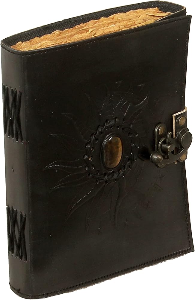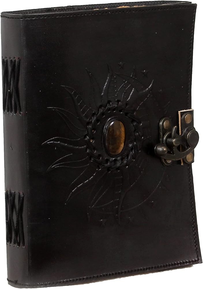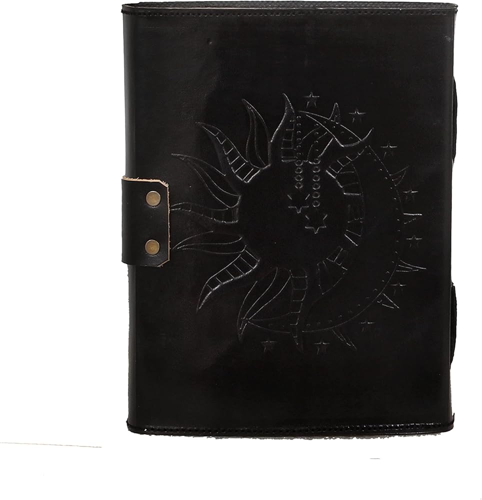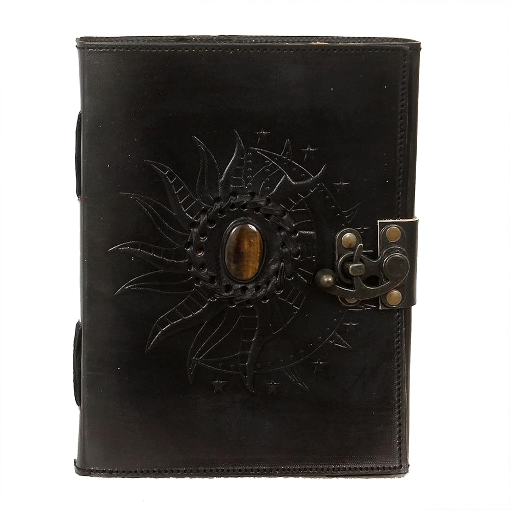 Leather Sun and Moon Stone Tiger 8X6 Inch Leather Journal for Women Leather Journal for Men Leather Sketchbook Leather Blank book Unlined Deckle Edge Paper Leather Journal Notebook Diary (black)