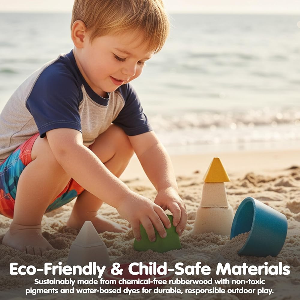 PlanToys® Creative Sand Play Wooden Montessori Outdoor Sensory and Imagination Toy | Tactile Exploration, Coordination and Open Ended Creative Play | Eco Friendly Sand Molds Set