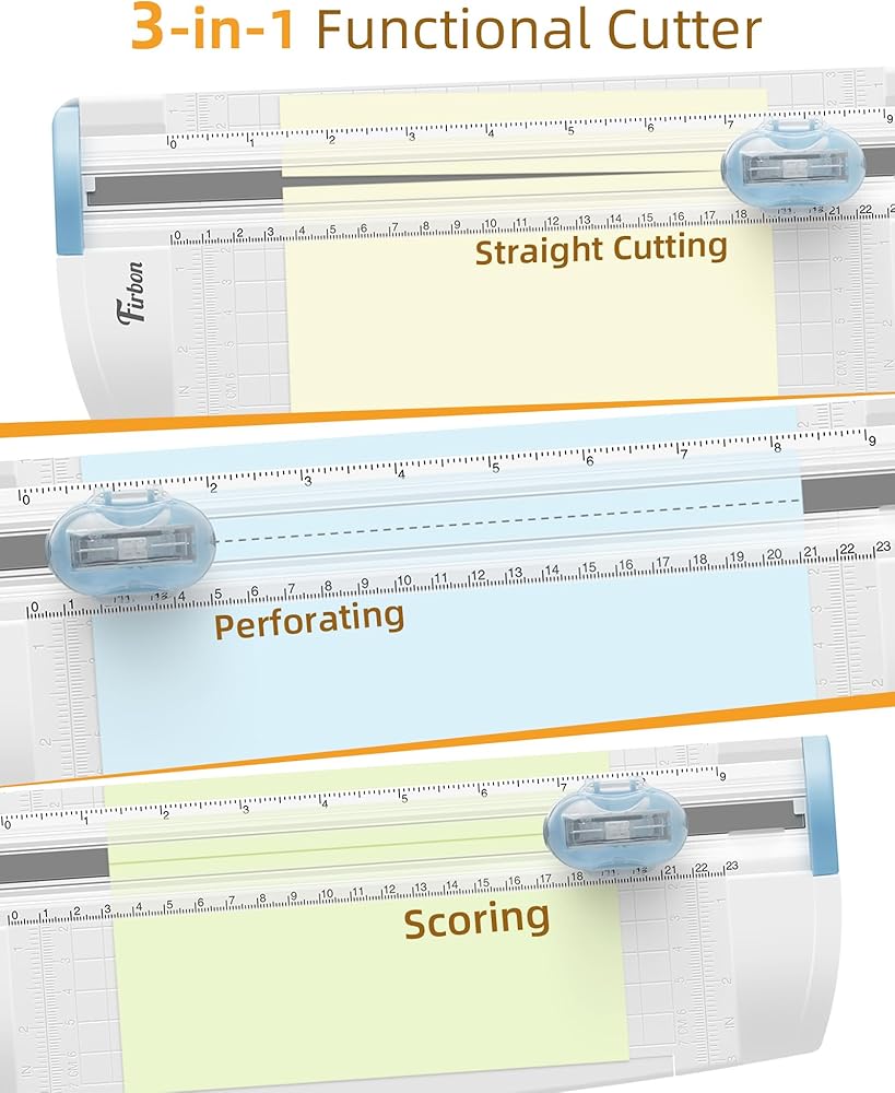 3-in-1 Paper Cutter: Combines paper cutter, paper scorer, and paper perforator for versatile document and craft needs, allowing for precise cuts, effortless tear-offs, and clean folds