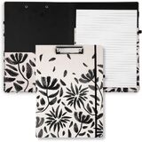 Steel Mill & Co Cute Clipboard Folio with Refillable Lined Notepad and Interior Storage Pocket, Padfolio for Work/Nursing/Teachers, Hand Drawn Black Floral
