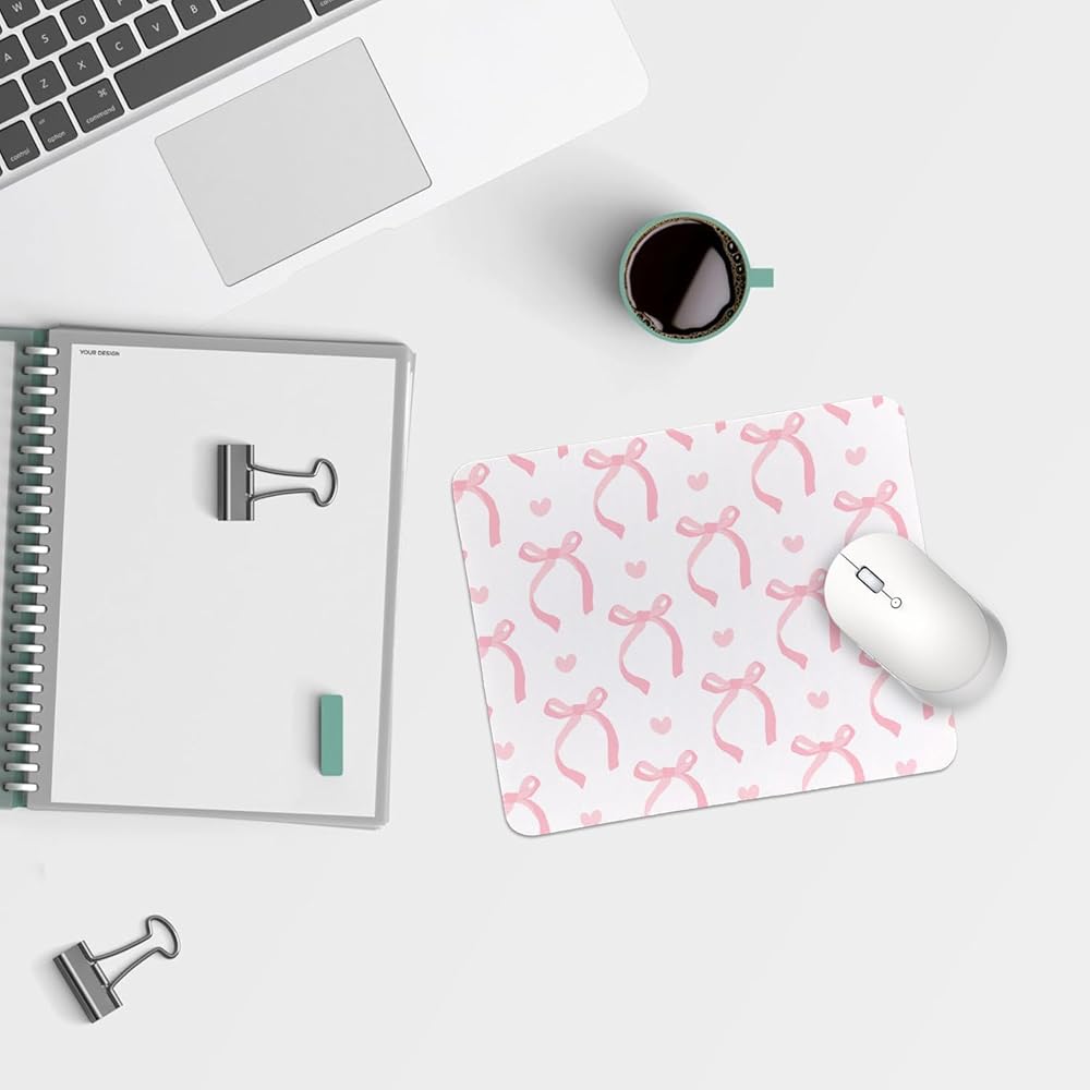QIYUHOY Pink Bow Mouse Pad, Coquette Trendy Desk Mat Personalized Mouse Mat Design, Home Office Gaming Working,Gifts for Girls Women Female Friends,9.5x7.9 inches