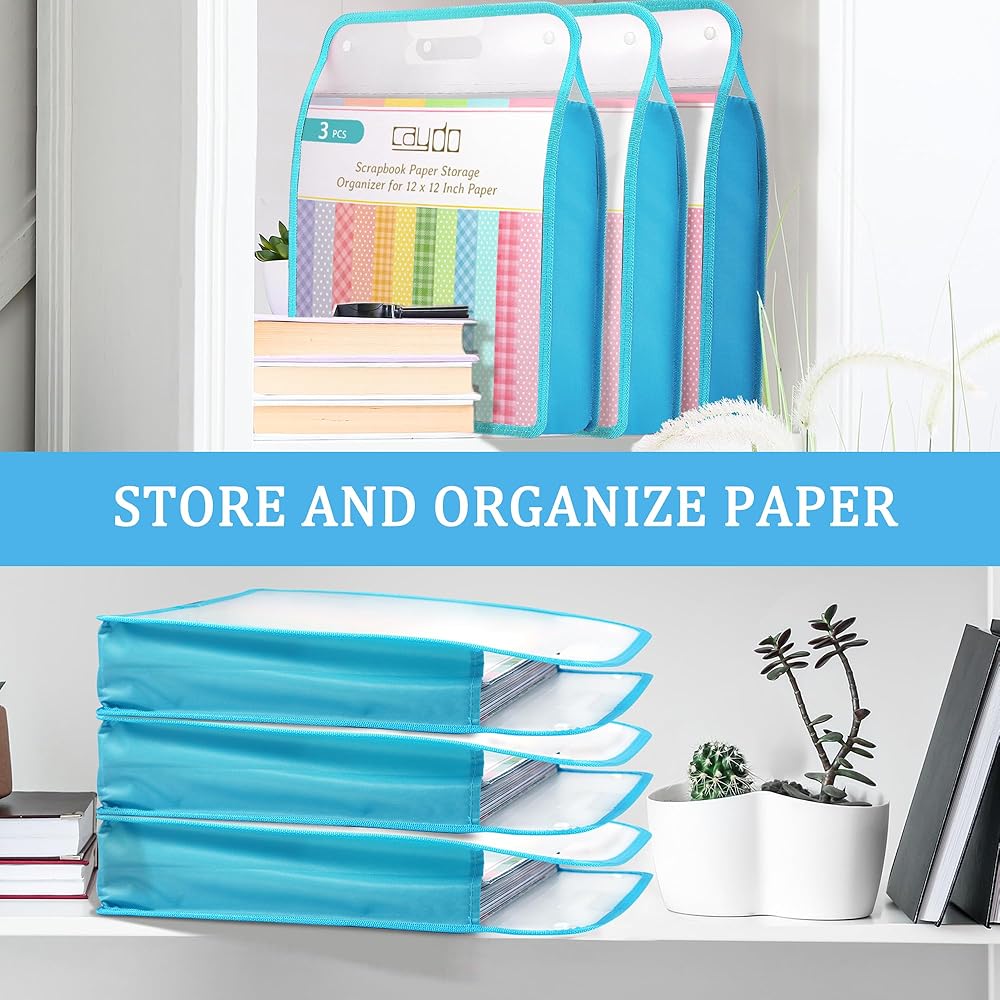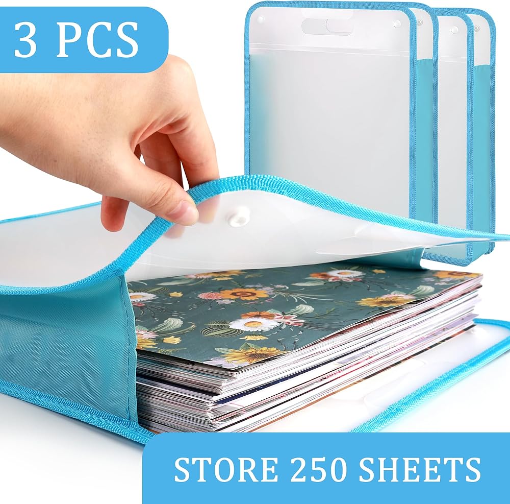 【Ample Storage Space】3 pieces scrapbook paper storage, each measuring 13.15 x 15.75 x 2.95 inches. Each can accommodate up to 250 sheets of paper. Including blue, pink, and black, you can convert the colors for different storage purposes