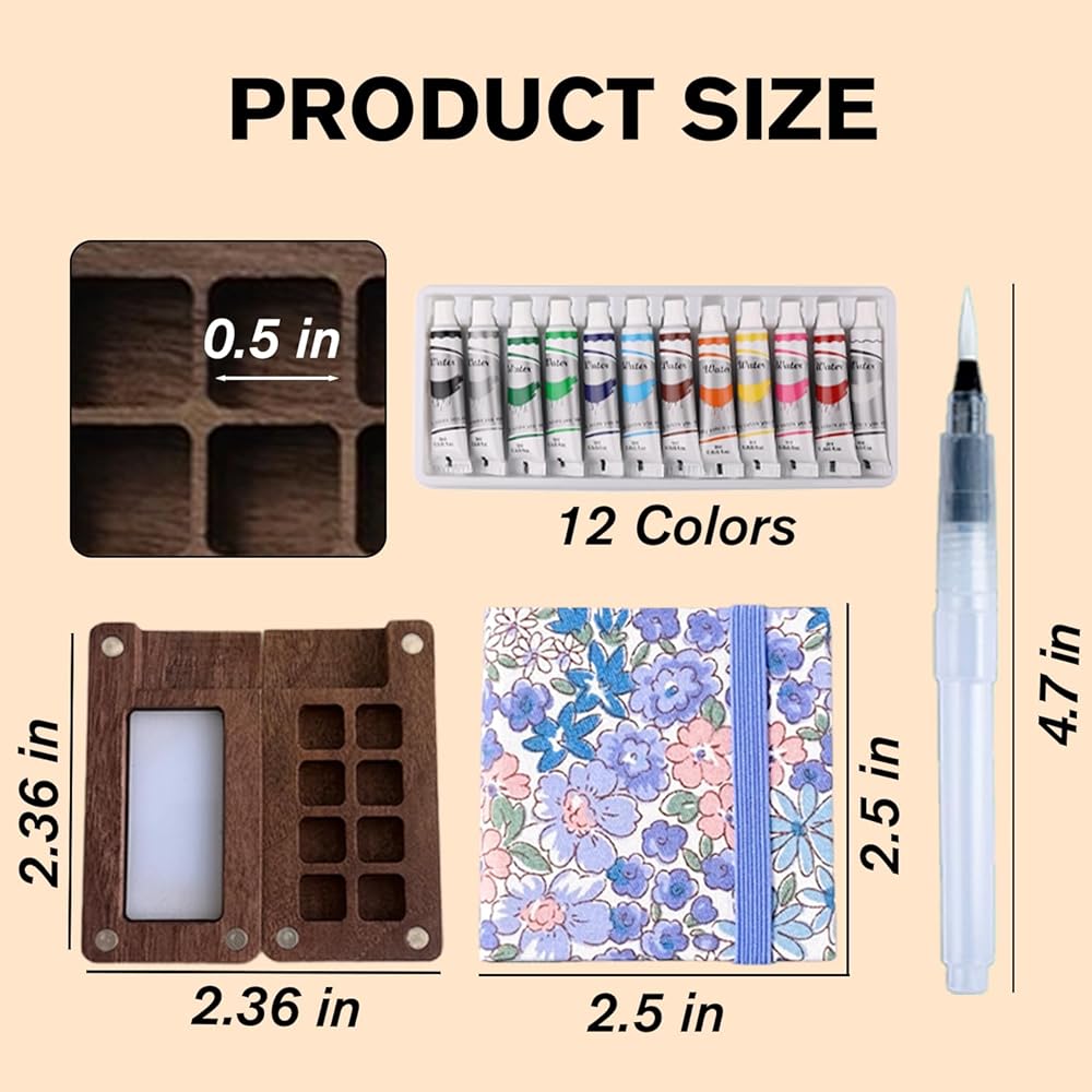 【MINI PORTABLE CREATIVE PAINT SET】: This mini watercolor paint set helps free up your creativity while creating moments of tranquility and is a companion for artistic expression!