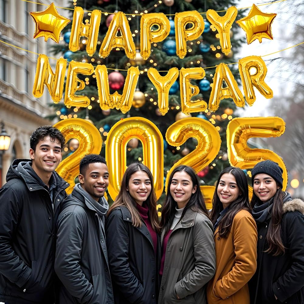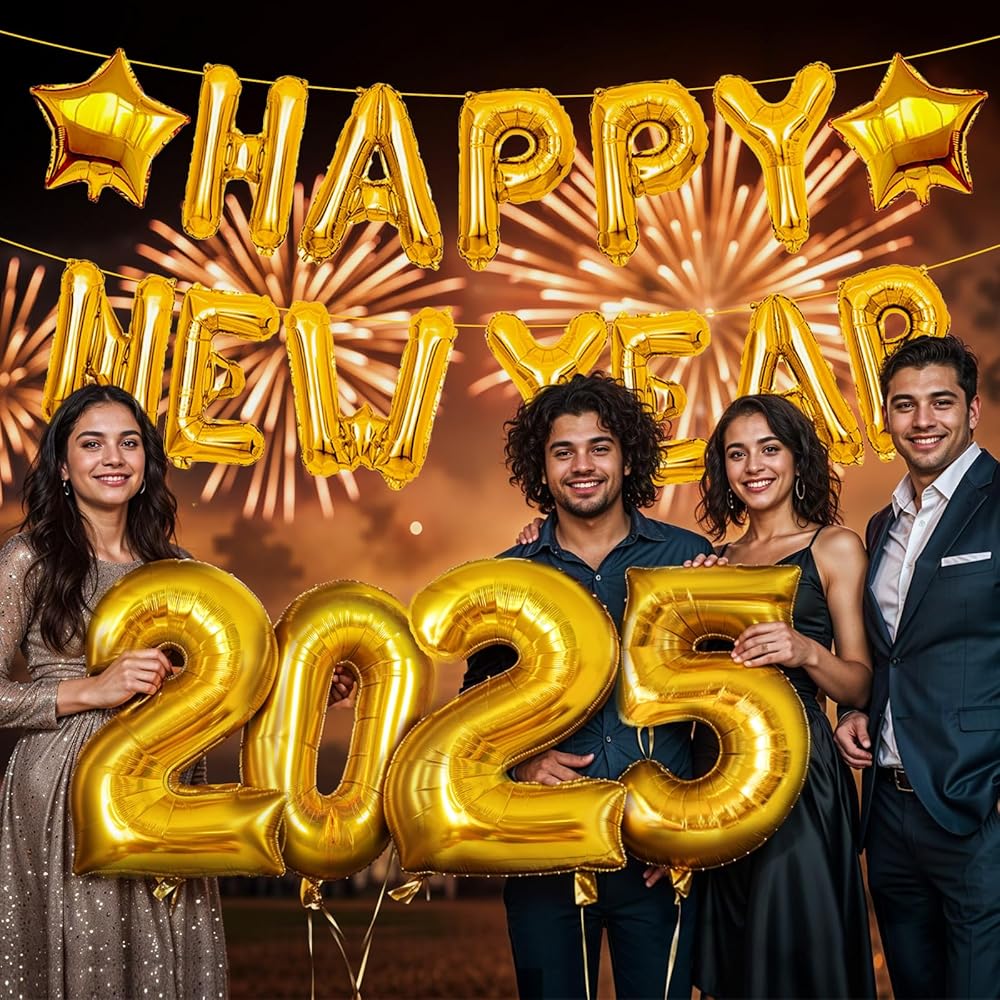 🧨【Premium Quality Materials】Made from top-quality aluminum foil, trhis gold happy new year balloon banner with 2025 balloon numbers are durable and long-lasting. They won't easily deflate or lose their shape, ensuring your decorations stay vibrant throughout the entire New Year's Eve party. Light and sturdy, self-sealing and reusable, you can use the straw to deflate the balloon after the party. Hang these NYE balloons as happy new year sign 2025 on the door as a welcome sign for guests.