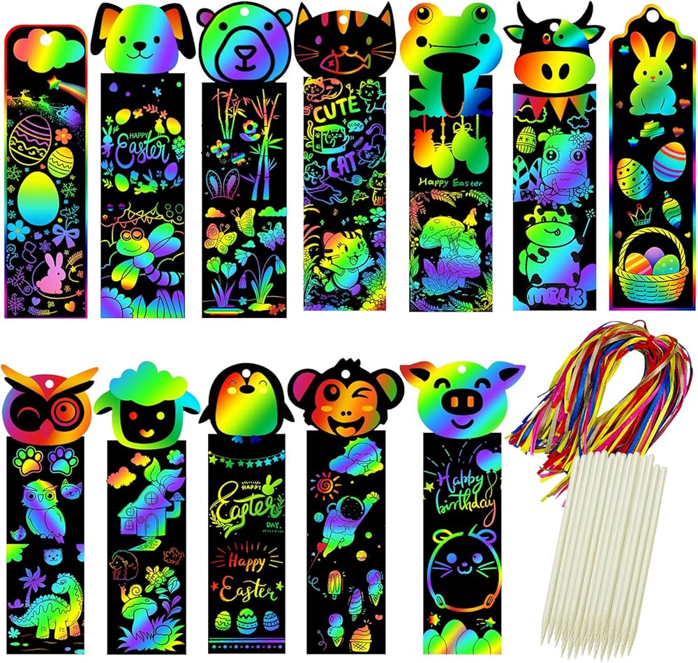Safety for Kids: We focus on quality and children's health, the scratch bookmarks for kids are made of high quality paper, will not harm the health of children, non-toxic, fun and creative activity for children involves creating rainbow bookmarks by simply scratching off the black coating