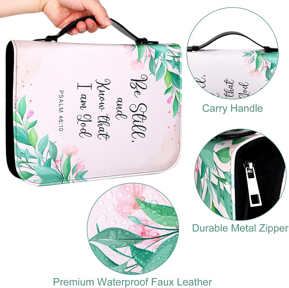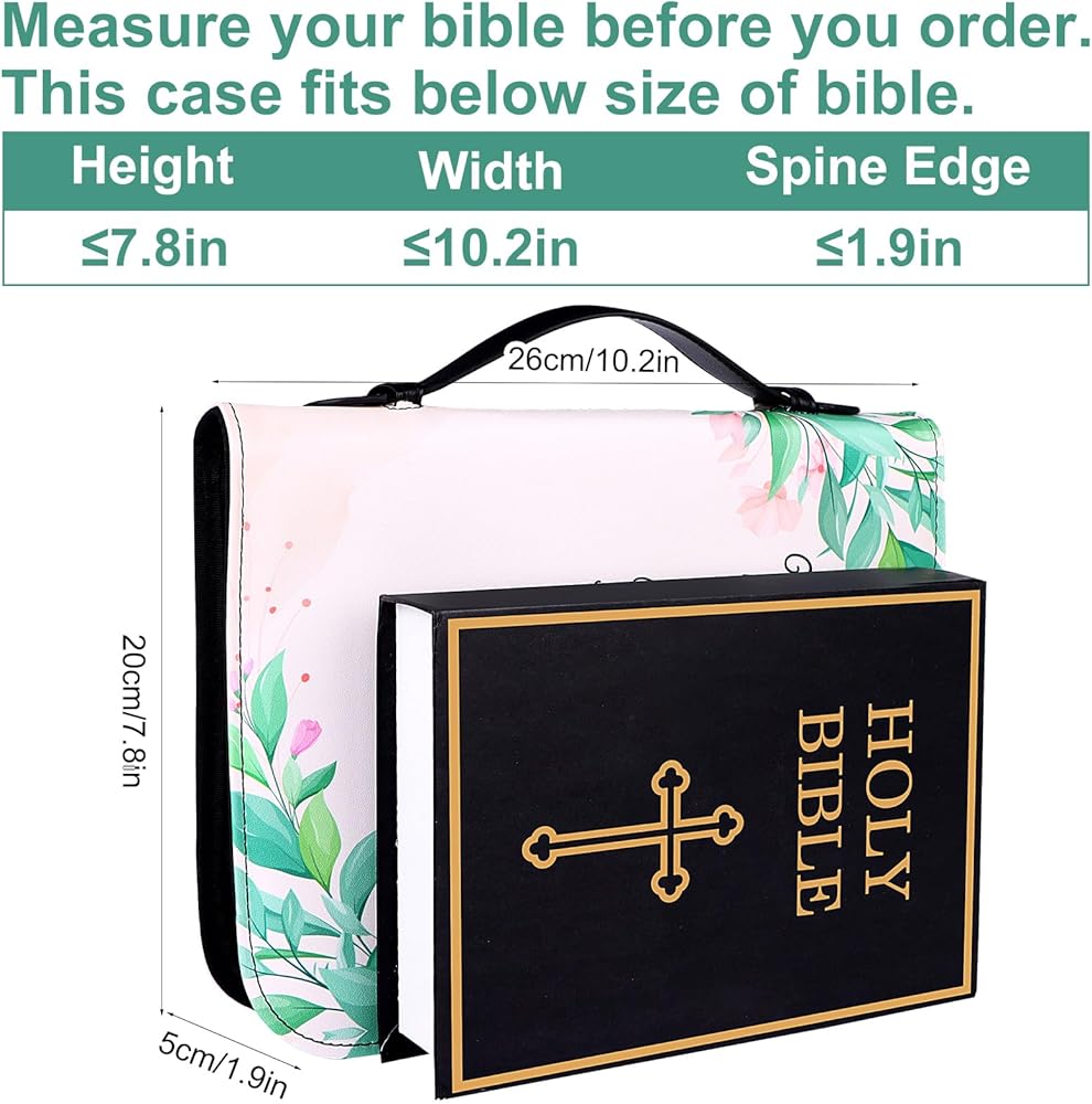 • High-quality Material: our floral religious bible case is crafted of high-quality PU leather, water-resistant, soft and lightweight, sewn with quality thread, this durable bible bags ensures your Bible accessories are secure, making it perfect as a Bible study tote bag.
