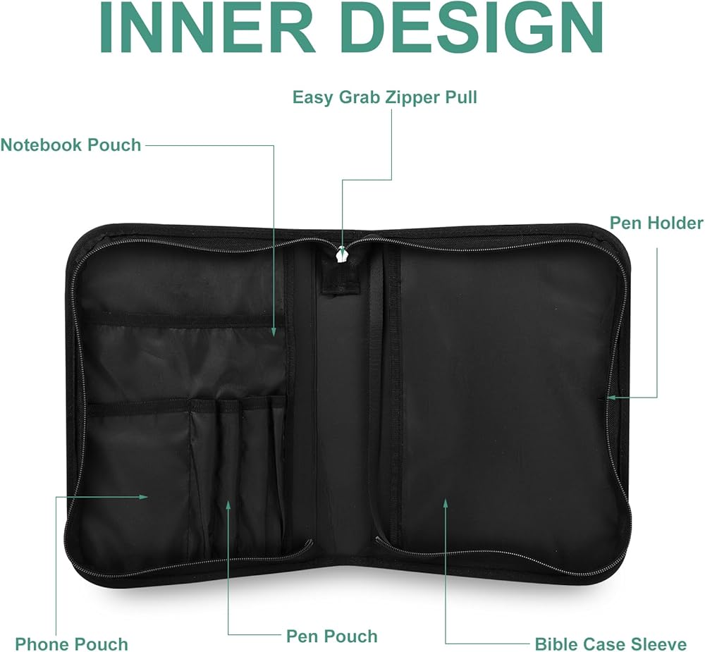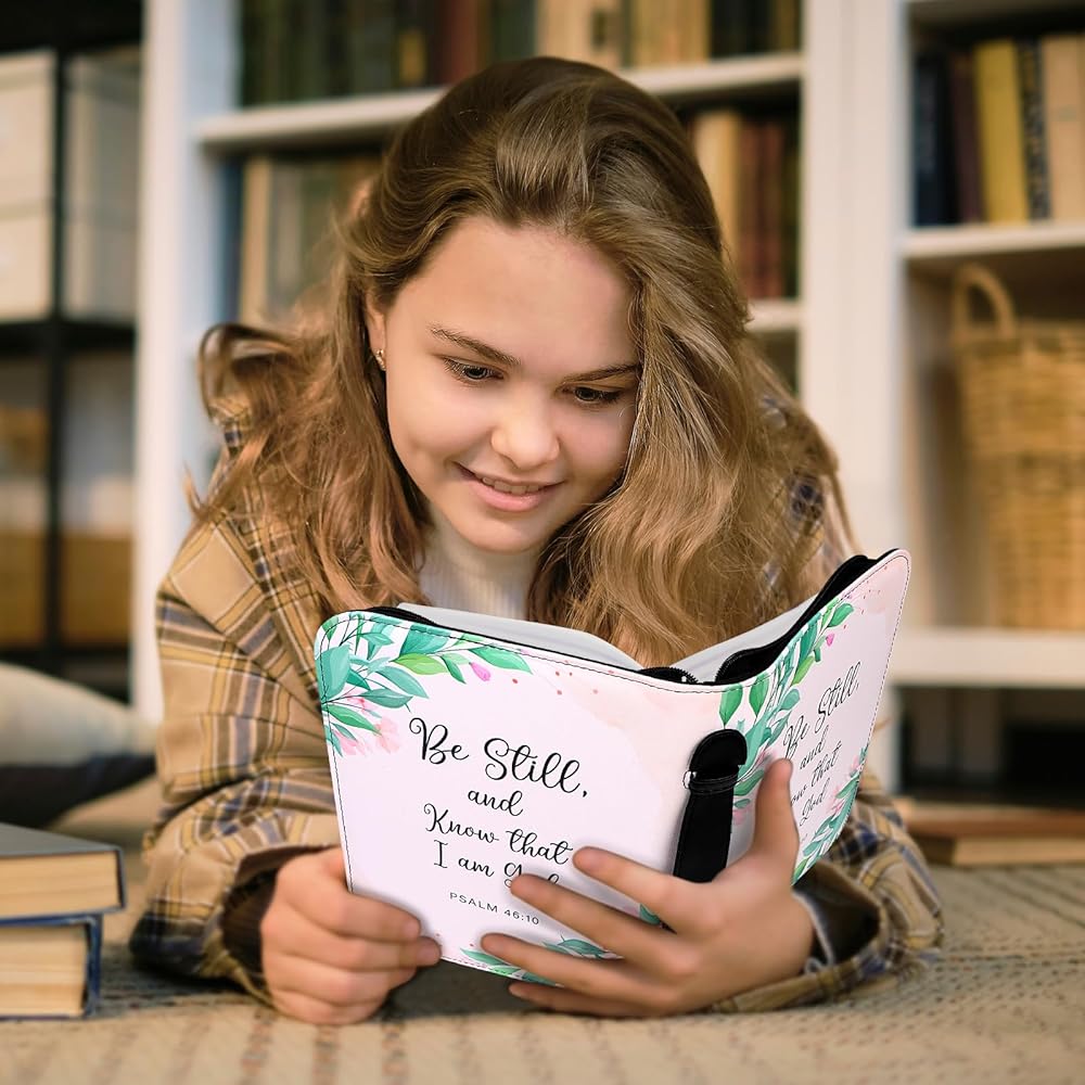 • Convenient Accessories: bible carrying case for women with Handle is easy to hold, secure zipper closure that ensures your Bible stays clean and safe inside, this Bible bag is a top choice among Bible cases for women and girls.