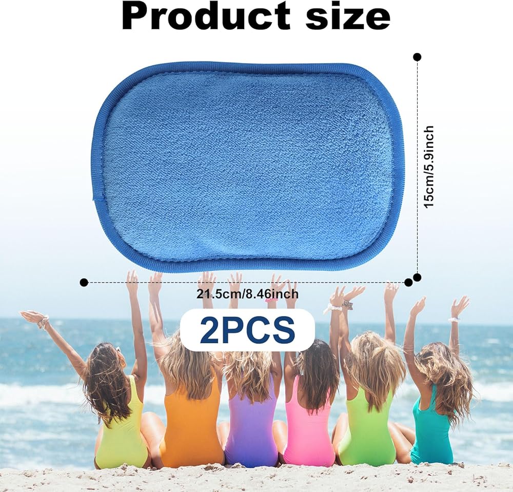 Large Size: Measures 21.5x15cm/8.46x5.9 inch. It has enough contact surface suitable for both adults and children. The surface of the sand remover bag is made of coral fleece fabric, which will not cause skin loss due to friction when in direct contact with the skin.