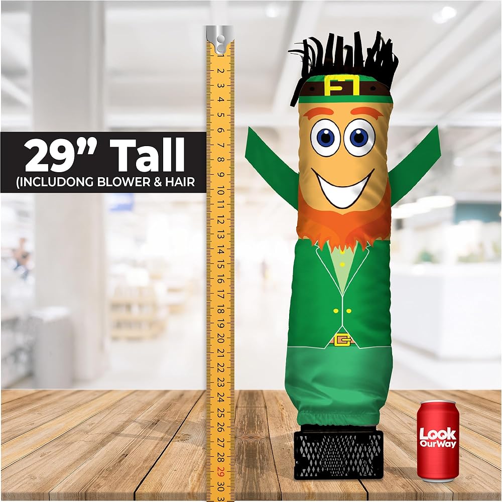 This 29" Tall mini air dancers inflatable tube man holiday theme set comes with your choice of seasonal and special occasion designs, as well as the proprietary mini blower. This miniature version of the full-size air dancers brand of inflatable tube men is designed and produced by the same company, LookOurWay. A perfect and hilarious addition to your workspace or office party, this mini tube guy is also great for seasonal business advertising, retail marketing, trade shows, special events, and more. The ever-growing Catalog of holiday and special event designs include American Flag, Rainbow, Christmas Santa Claus, Christmas Snowman, Halloween Skeleton, Halloween Ghost, St. Patrick's day Leprechaun, Bald Eagle, Uncle Sam, Happy birthday, Valentine's day hearts, and more.