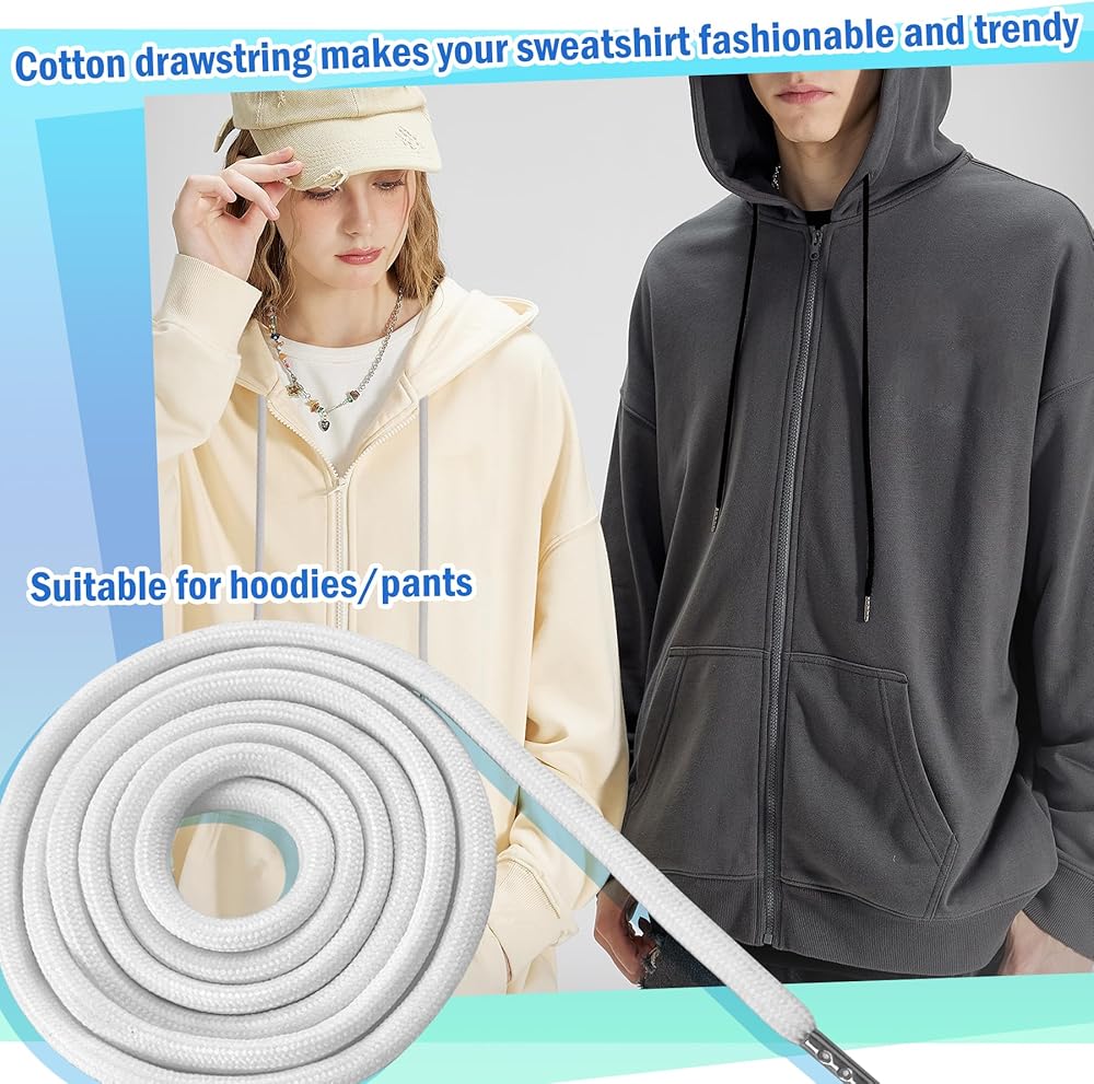 Premium Material and Size: Made from high-quality cotton, these drawstring cords are durable, breathable, and soft to the touch. Each cord is 51 inches long, perfect for a variety of clothing needs
