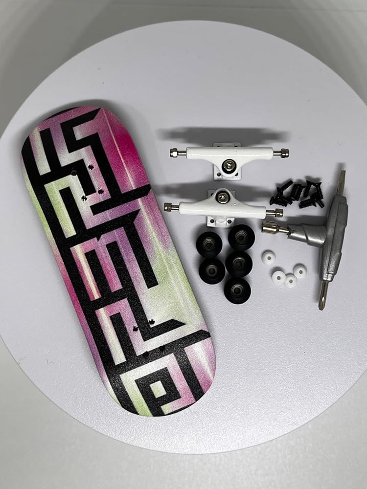 Desc.:The Pro Premium fingerboard complete set,Op3ra-maze(litez) Edition includes the Handmade maple wood 5 Plys, Using Quality UV printing graphic maze(litez) Edition,which included 5 Pcs Polyurethane bearing wheels in ivory and one more pro bushing for replace,The pro solid single axles trucks with laser Op3ea logo and self Lock Nuts in Nylon Inserts upgraded, 10 black screws, 1 pro tool, 1 grip tape,1 free Op3ra sticker.Deck measures 34mm wide and is 96mm long. Fetures medium kicks and medium concave. Handmade drilled holes on deck to ease your install.