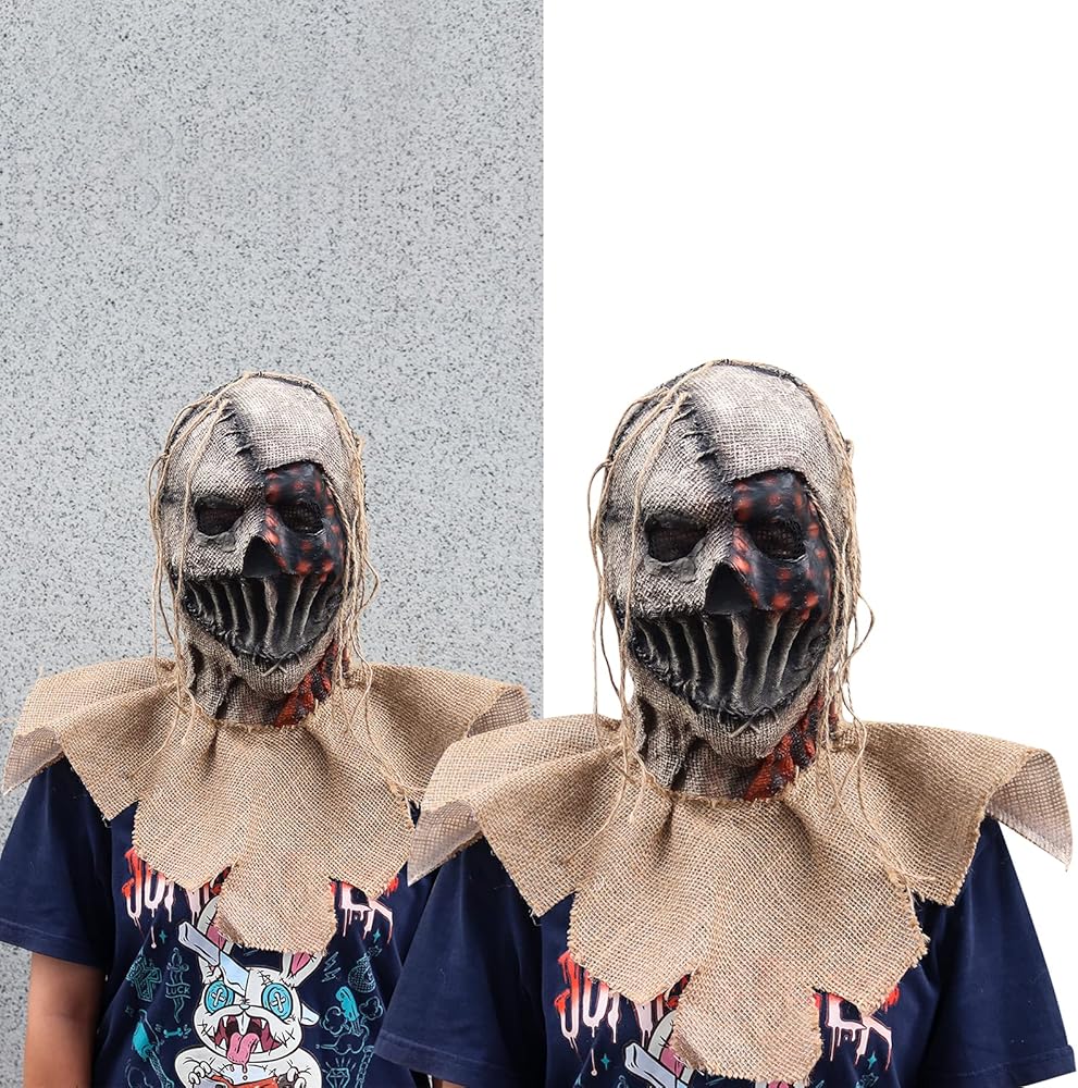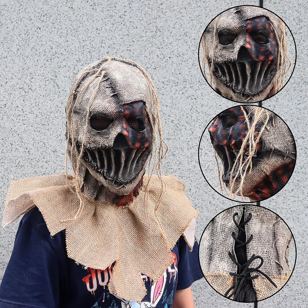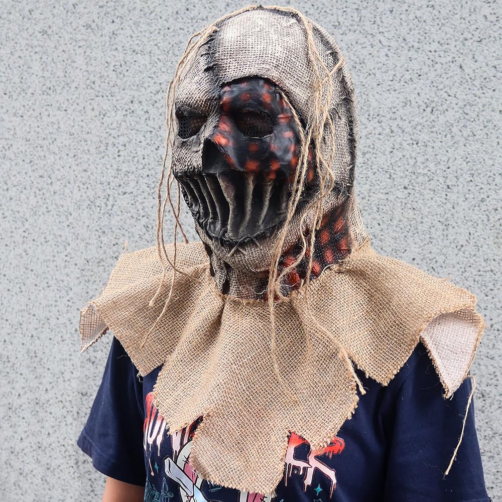 【Scarecrow Mask】Scarecrow Mask Burlap Sack Scarecrow Headwear Creepy Full Head Killer Mask Scary Halloween Cosplay Carnival Party Prop.