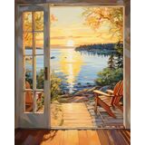 Paint by Number Lake Night Scenery Cabin Landscape DIY Painting On Canvas with Brushes Acrylic Paints Lakeside Nature Landscape Paint by Numbers for Adults Students Beginner 16x20 Inch(without Frame)