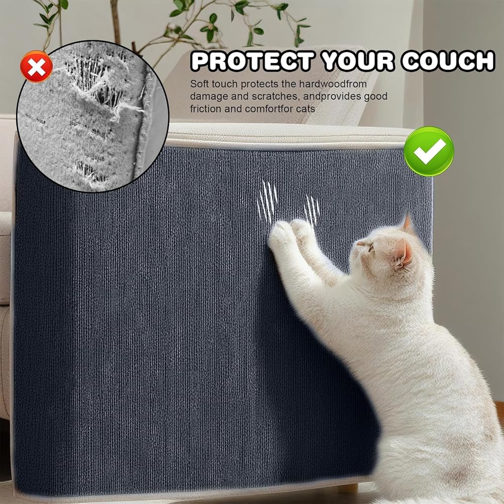 Anti-slip Self-Adhesive Cat Scratching Mat:The bottom of the cat scratching mat is made of 100% self-adhesive material with a highly adhesive self-adhesive backing, which can be effectively attached to furniture surfaces such as wood, plastic, glass, tiles and so on. This cat scratch mat has strong adhesion, safe and reliable, won't damage the furniture, the cat scratching mat can provide good friction and comfortable jumping sensation, while protecting the hardwood board from scratches