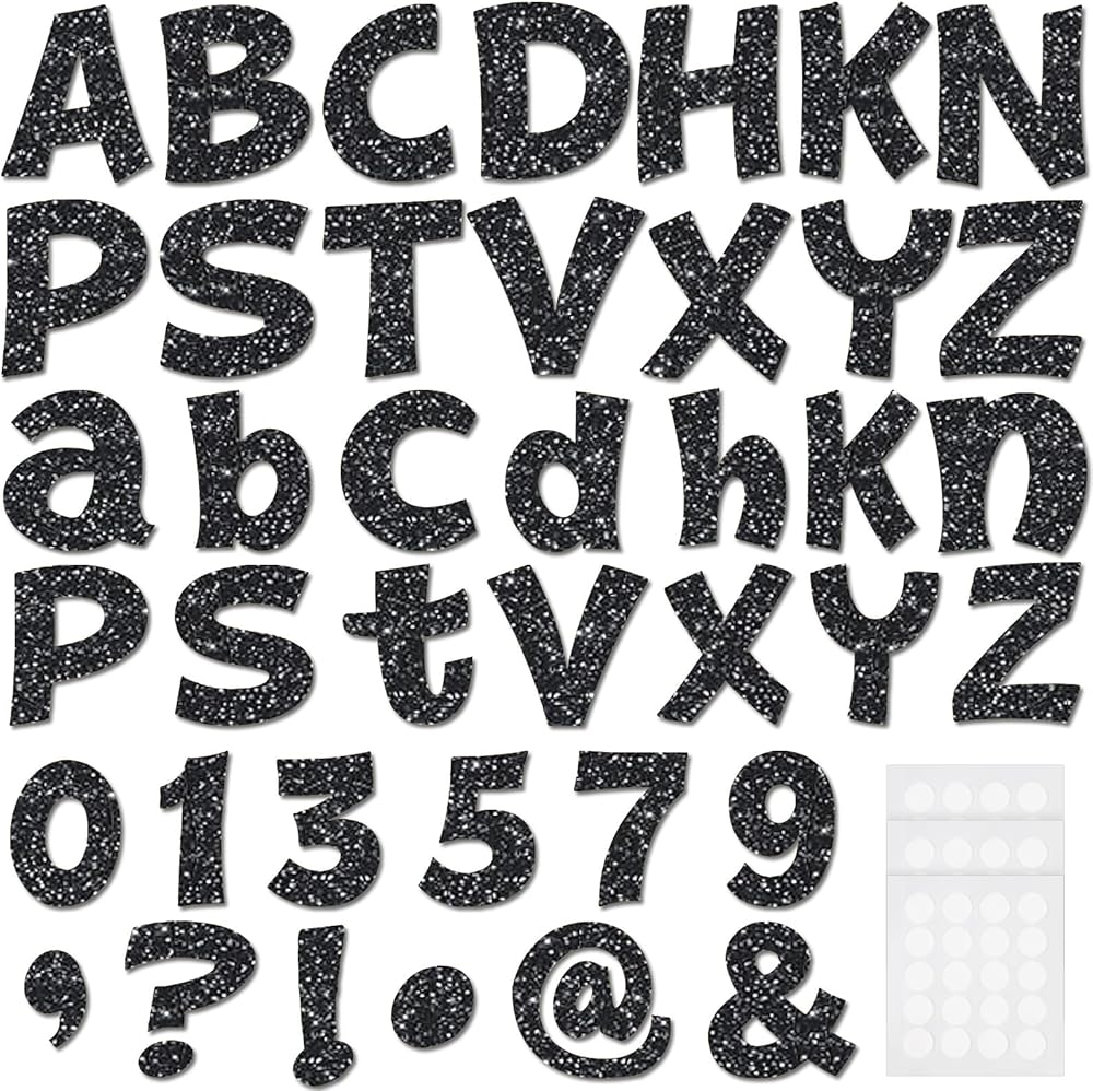 Colarr 216 Pcs Glitter Bulletin Board Letters for Classroom Number Alphabet Punctuation Symbol Cutout 4'' Die-Cut Poster Letter with Adhesive Dot School Party Holiday Decor Display(Black)