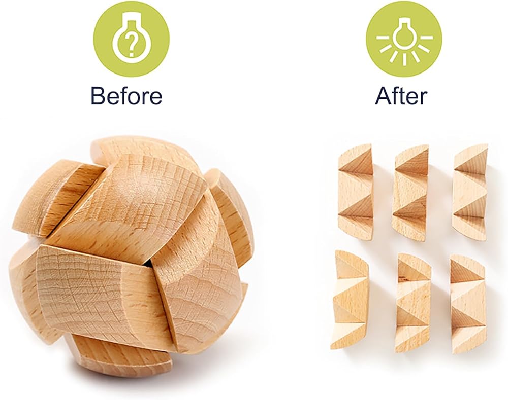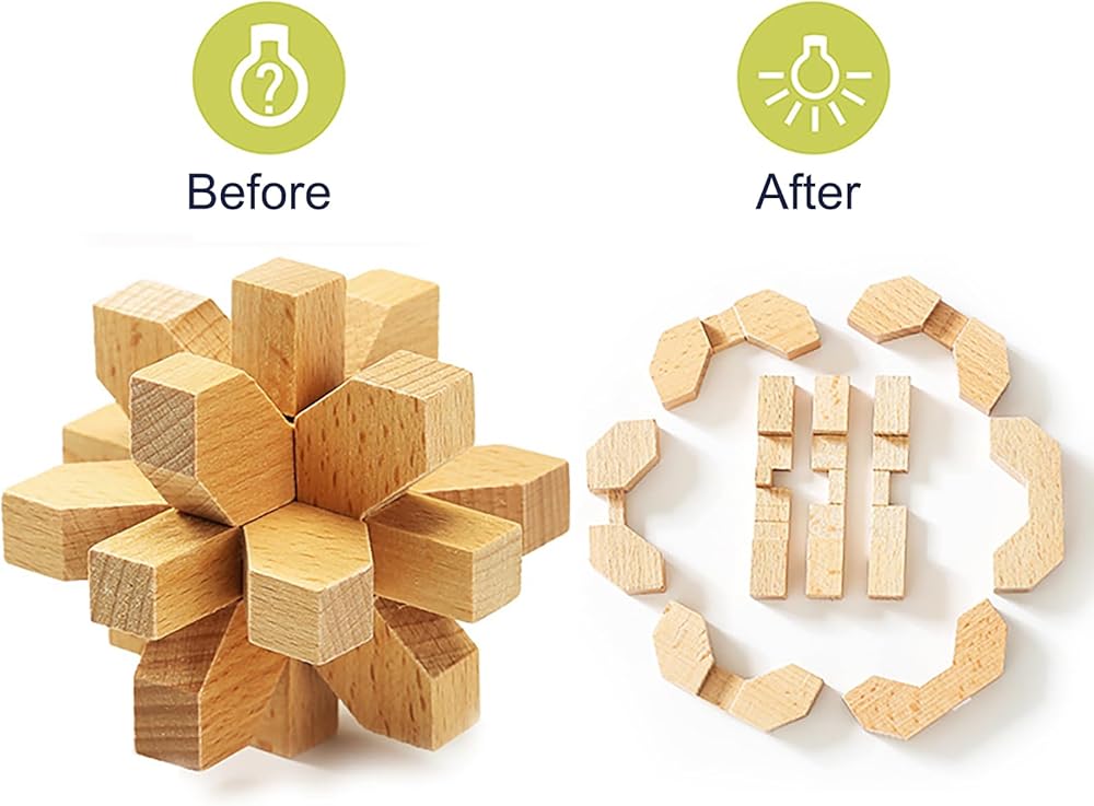 ● The puzzle looks simple, but it contains many mysteries. They are easy to disassemble but difficult to assemble.