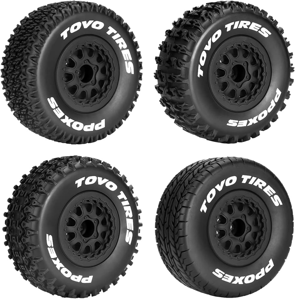 🎖🎖【Competible For】This 1/10 Scale RC Wheels and Tires with 12mm hex, it designed for almost all 1/10 Scale RC short course truck cars with 12mm hex, like for Traxxas Slash 2wd 4x4 HSP Tamiya HPI Kyosho VKAR Redcat LRP RC car, etc.