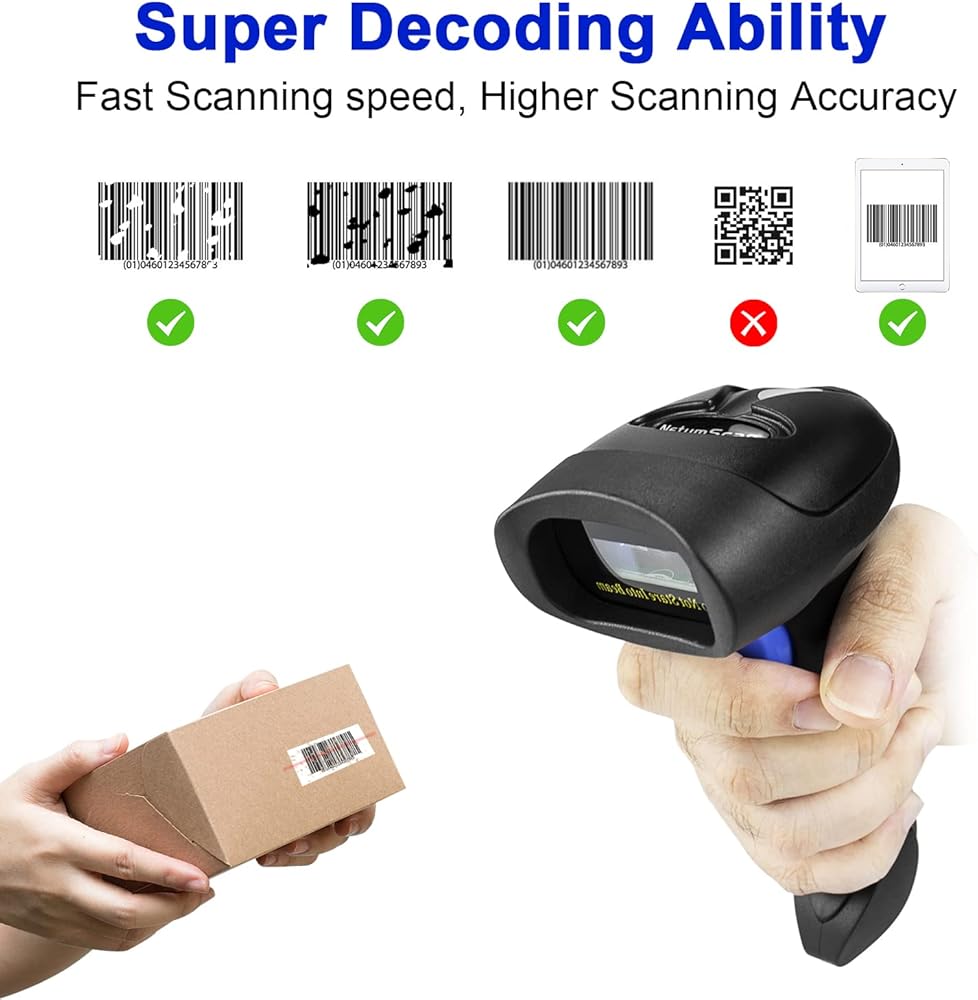 NetumScan Wireless Barcode Scanner with Stand, 2-in-1 Automatic USB Cordless 1D Barcode Reader Handheld CCD Bar Code Scanner with Stand for Store, Supermarket, Warehouse