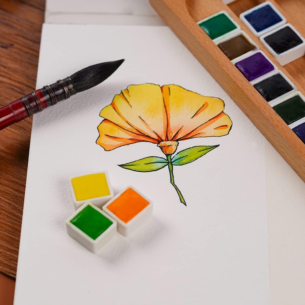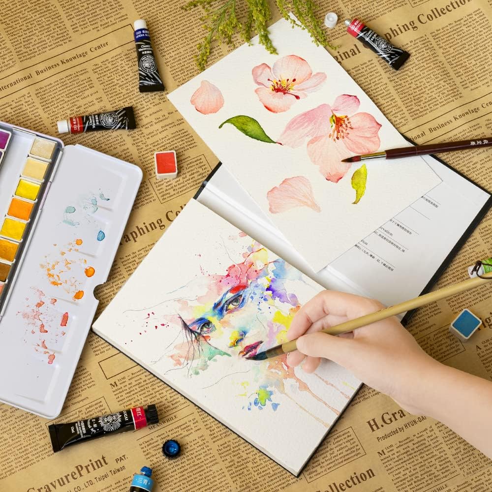 Watercolor Paper with High Absorption: The watercolor paper is made of premium long-staple cotton with high absorbency, which can better absorb colors of pigments and shorten the time you have to wait for the paint to air dry
