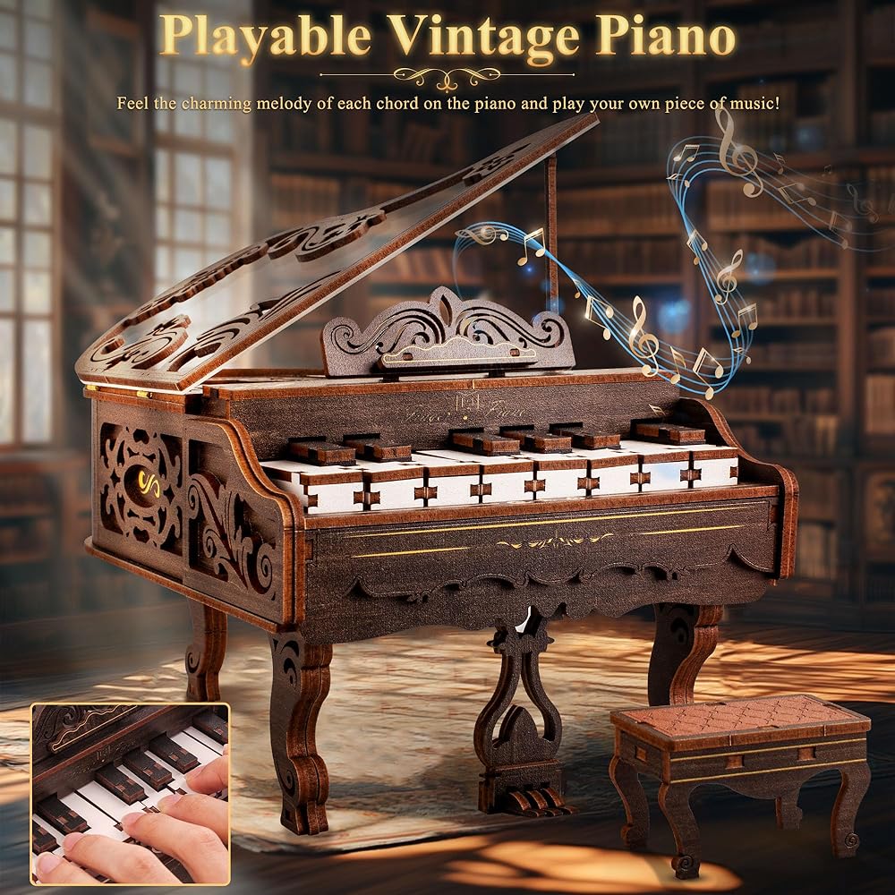 3D Puzzles for Adults: Playable Piano Model Kit, 1:20 Scale Building, Music Box, Magic Wooden Building Kits - Piano Christmas & Birthday Gifts for Adults & Teens