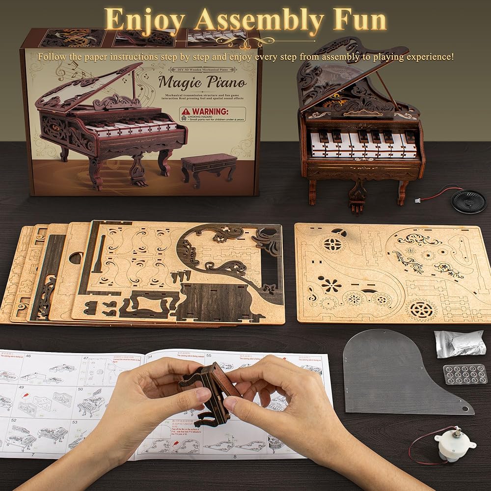 【Perfect Gift Choice】:3d wooden puzzles make a unique and memorable gift for birthdays, holidays, or anniversaries. Its elegant packaging and distinctive musical features make it an ideal gift for friends and family alike.