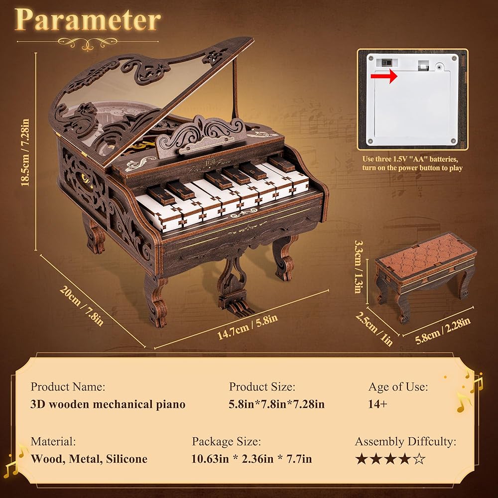 【Mechanical Music Experience】:Piano model kit comes to life once assembled, combining craftsmanship and functionality with a battery-powered feature that plays a delightful tune. Each key is designed to move in unison with the gears, creating a unique musical experience that blends artistry and engineering.