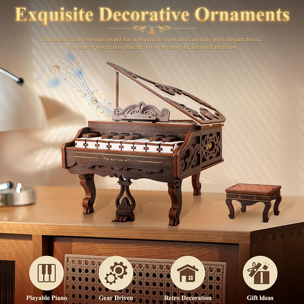 【Exquisite Piano Model】:3d wooden puzzles for adults beautifully capture the elegance of a classical piano, featuring intricate gears inside a transparent structure that enhances the assembly experience with an artistic touch. It's not only a fun project to build but also a tasteful decor piece, adding a vintage charm to any home, office, or café.