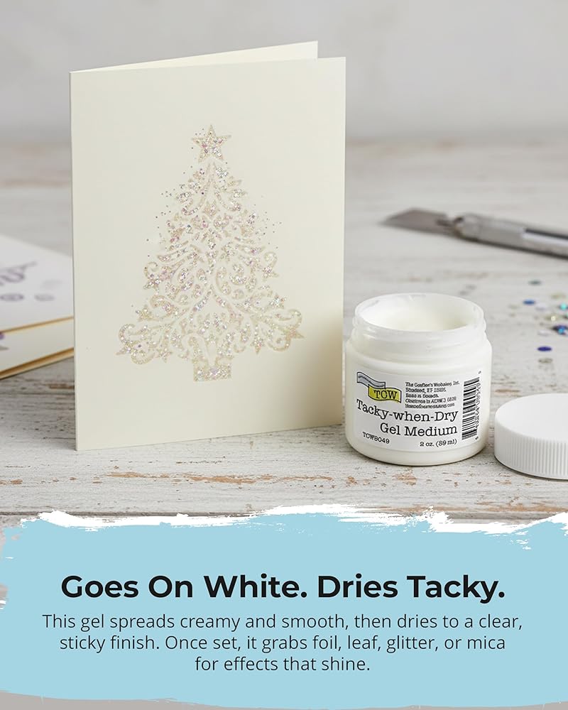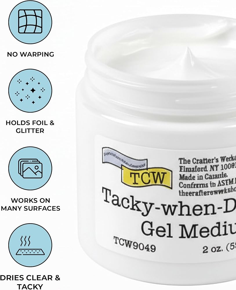 The Crafter’s Workshop – Tacky-When-Dry Gel Medium, Foil Adhesive for Paper Crafts, Journaling & Mixed Media | Dries Clear & Tacky for Glitter, Gilding & Mica Effects, 2 oz Jar
