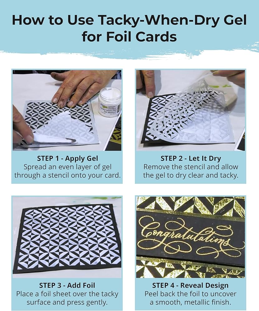 The Crafters Workshop TCW9049 Tacky-when-Dry Gel Medium provides a sticky transparent 3D surface adhere décor foils or gilding to home, school, craft, or art projects