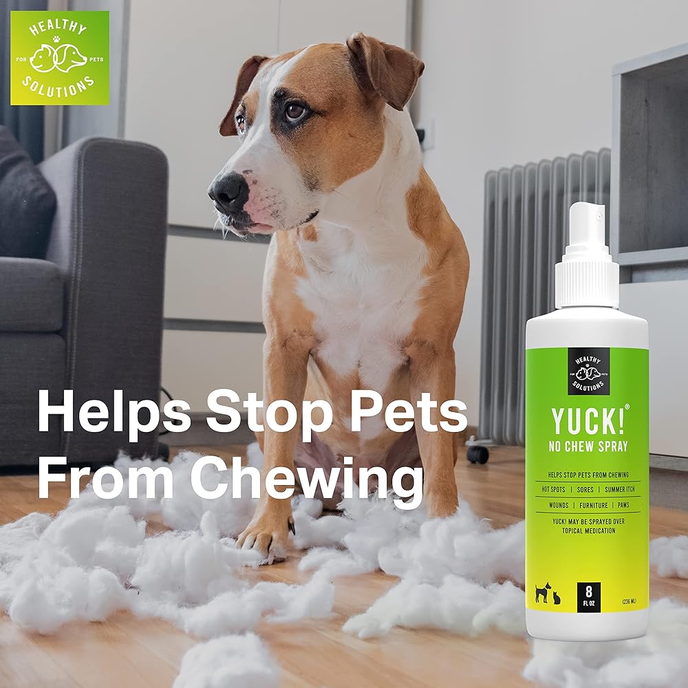 SUPER VERSATILE -- Use our yuck spray indoors and outdoors on just about any surface! Can be used directly on your pet's hot spots, fur, bandages, plants, furniture, wood, drapes, and more. This product is also cat-friendly!
