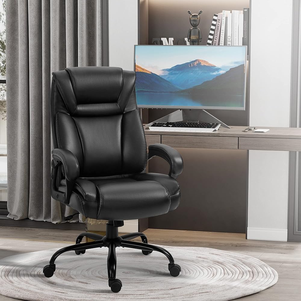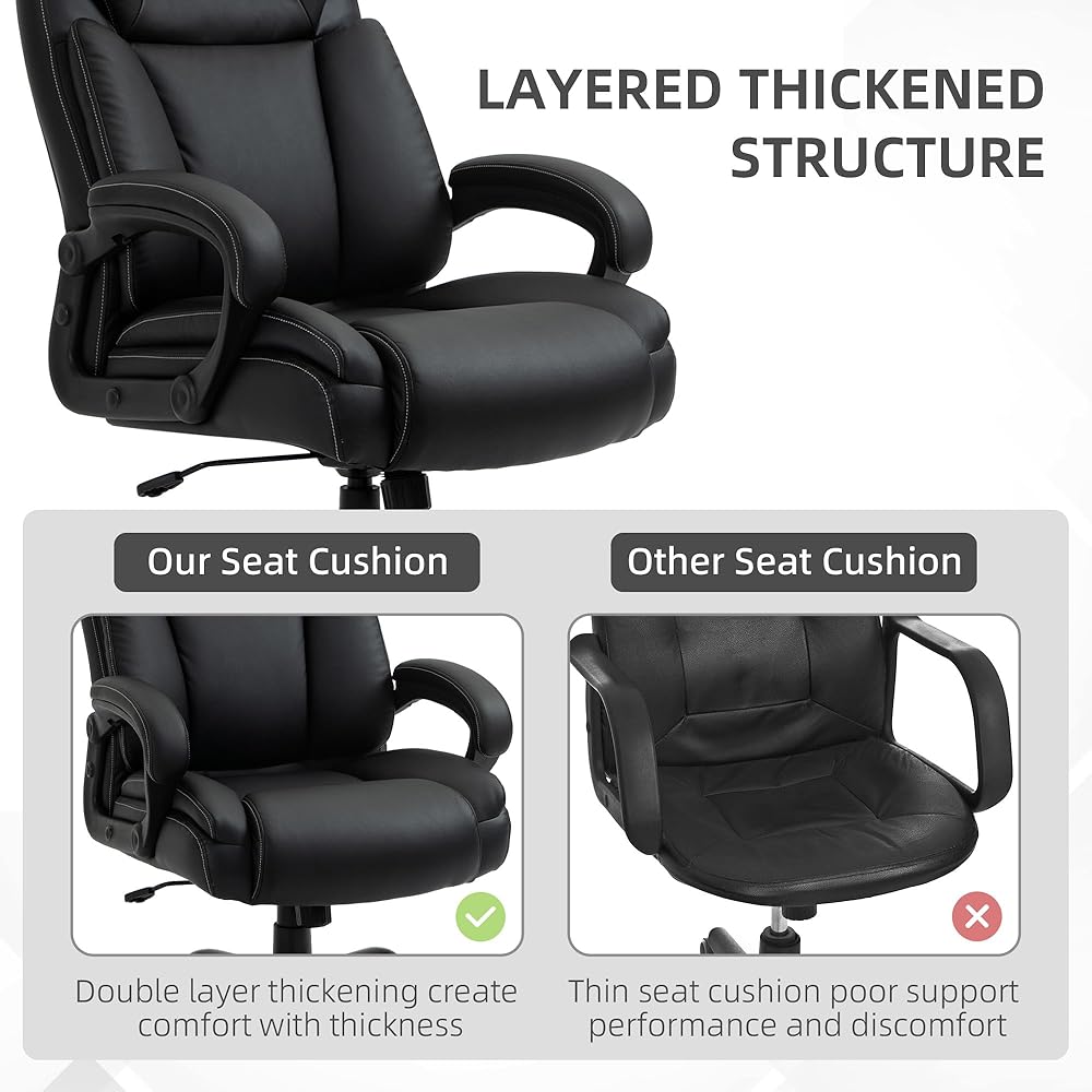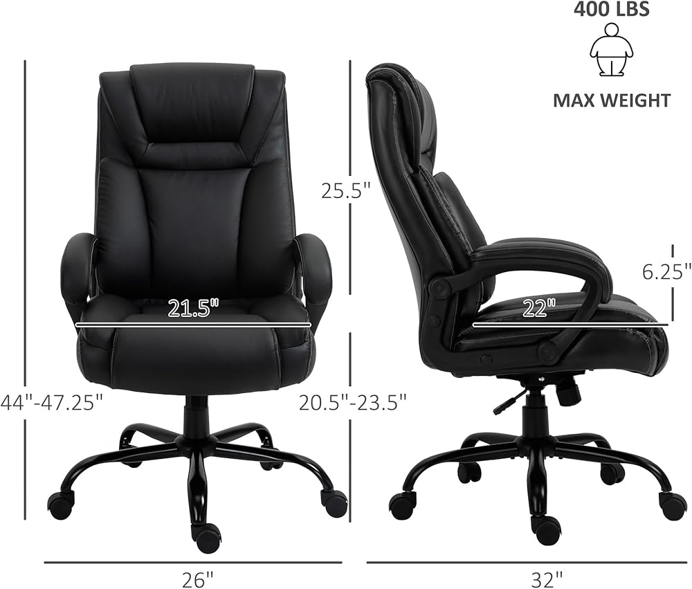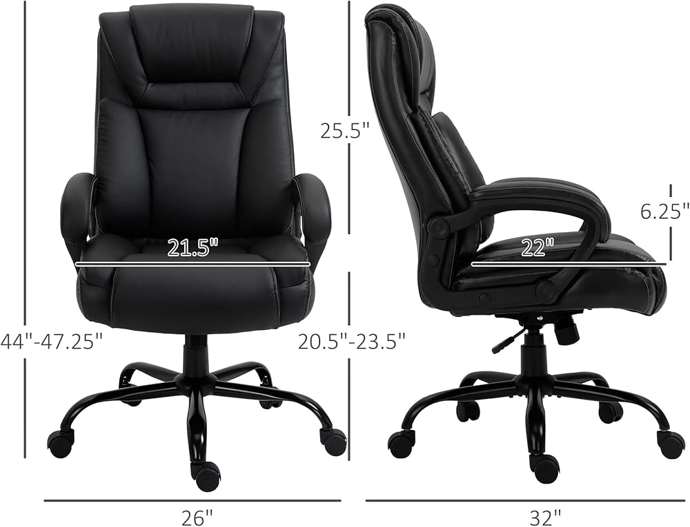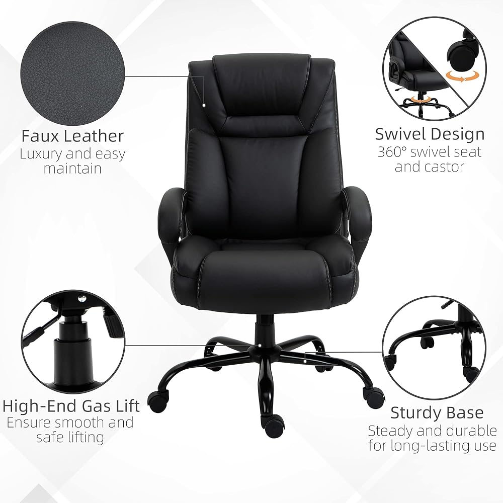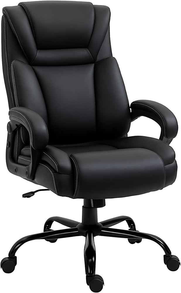 كرسي مكتب تنفيذي كبير وطويل 400 رطل من Vinsetto مع مقعد واسع، كرسي مكتب كمبيوتر مع تنجيد مريح من جلد البولي يوريثان عالي الظهر، ارتفاع قابل للتعديل وعجلات دوارة، أسود