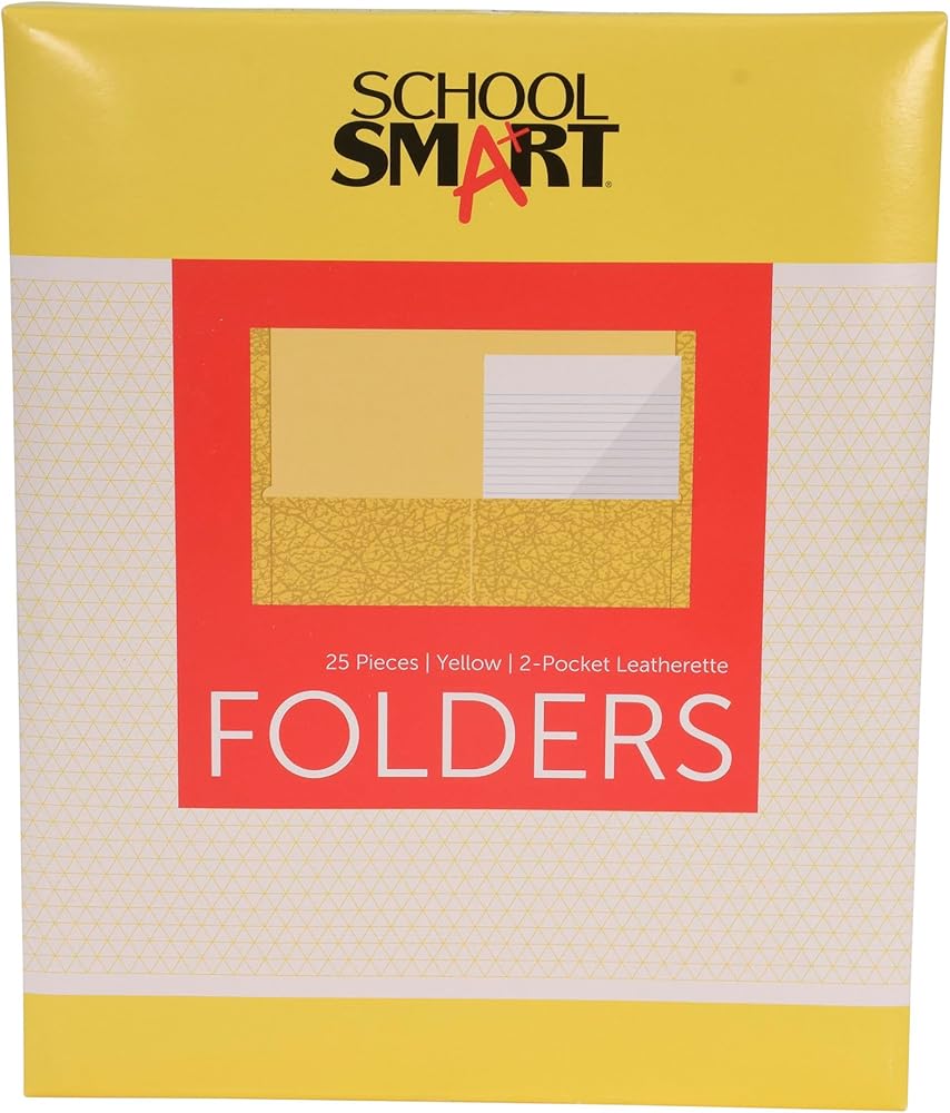 Compile and file with ease with School Smart's 2-Pocket Folders, which hold up to 100 sheets! Embossed leatherette texture lends quality for both professional, school, and personal needs. The double pockets are closed on 3 sides (outer edge, top, and bottom) to ensure your papers stay securely in place, while double reinforced edges provide extra durability when opening and closing. Comfortably holds 8 1/2 x 11 inch sheets. Comes in pack of 25 folders.