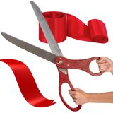 Your set includes a large scissors for the ribbon cutting ceremony gold with golden ribbon for the grand opening or other special events. The ribbon for the ribbon-cutting ceremony measures 4 inches wide by 30 feet long. Big scissors for the ribbon cutting ceremony is 25 inches closed. Our set of giant gold scissors with the ribbon gold will surely meet your grand opening needs!
