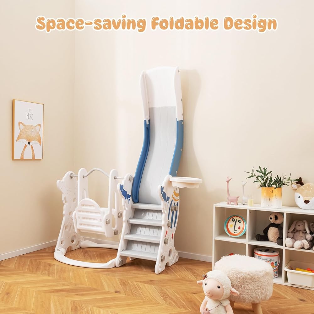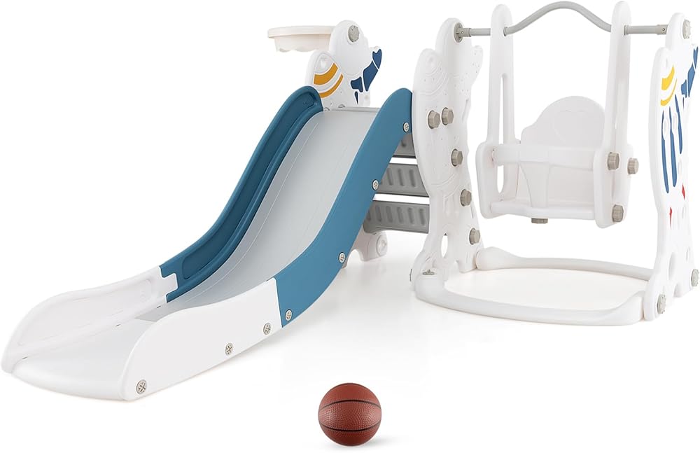 【Easy to Assemble】 Value pack: slide, basketball, pump, basketball hoop, user manual, Our 4-in-1 game set can be quickly assembled in just a few steps according to the clear instructions. All necessary hardware is included and no complicated tools are needed. This toddler slide and swing set will provide a never ending adventure for your little ones!