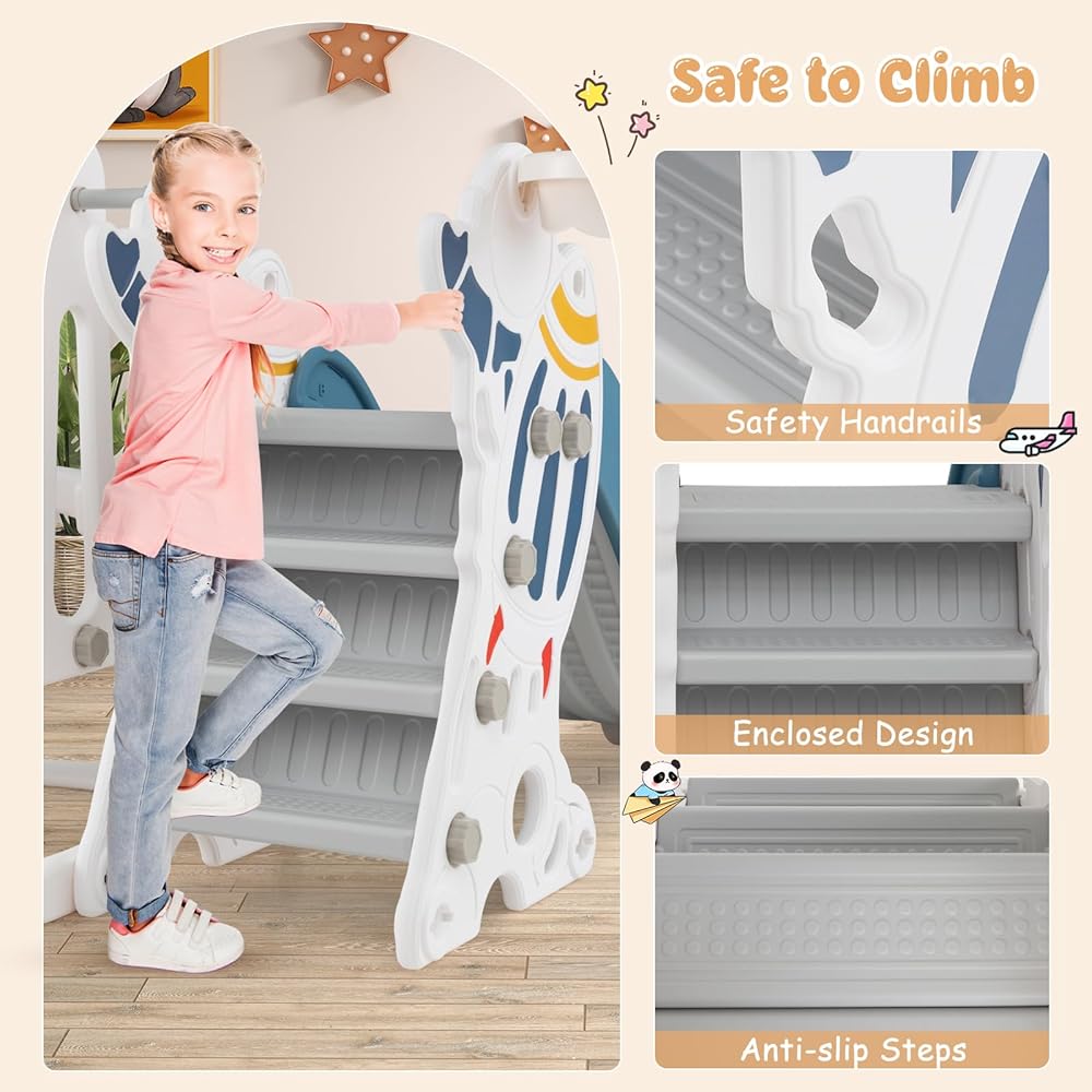 【Perfect Toddler Gift Playset for Children】 Cute rocket patterns are sure to appeal to your little adventurers, whether it's for a birthday, Christmas, or any other special occasion. BPA-free materials do no harm to kid's health or environment. Easy-to-install nuts allow for hassle-free assembly. Note: The package comes with a small basketball and a pump for convenience.
