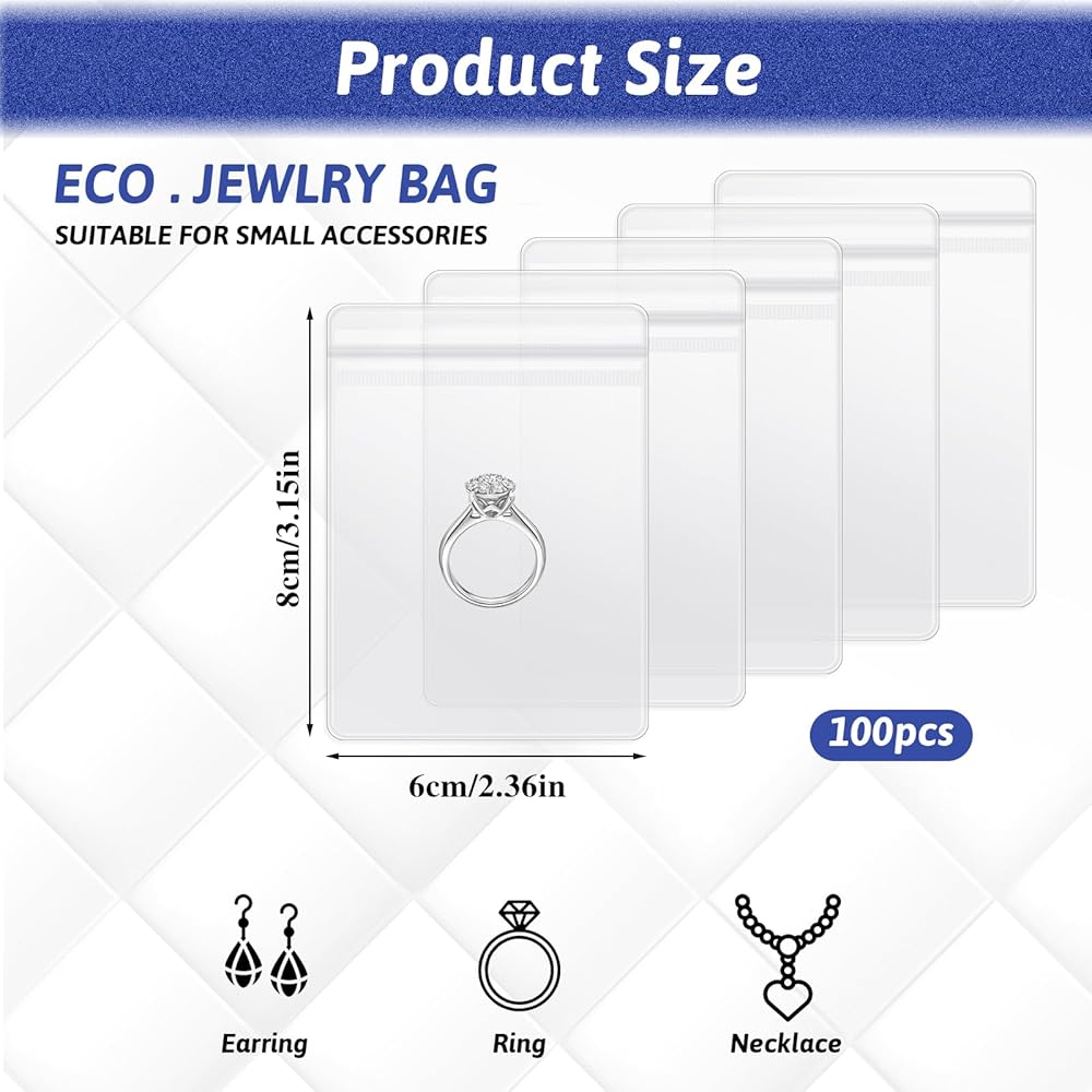 【Packing List】You will receive 100pcs jewelry bags clear plastic, size is 6 X 8 cm/2.36 X 3.15 in