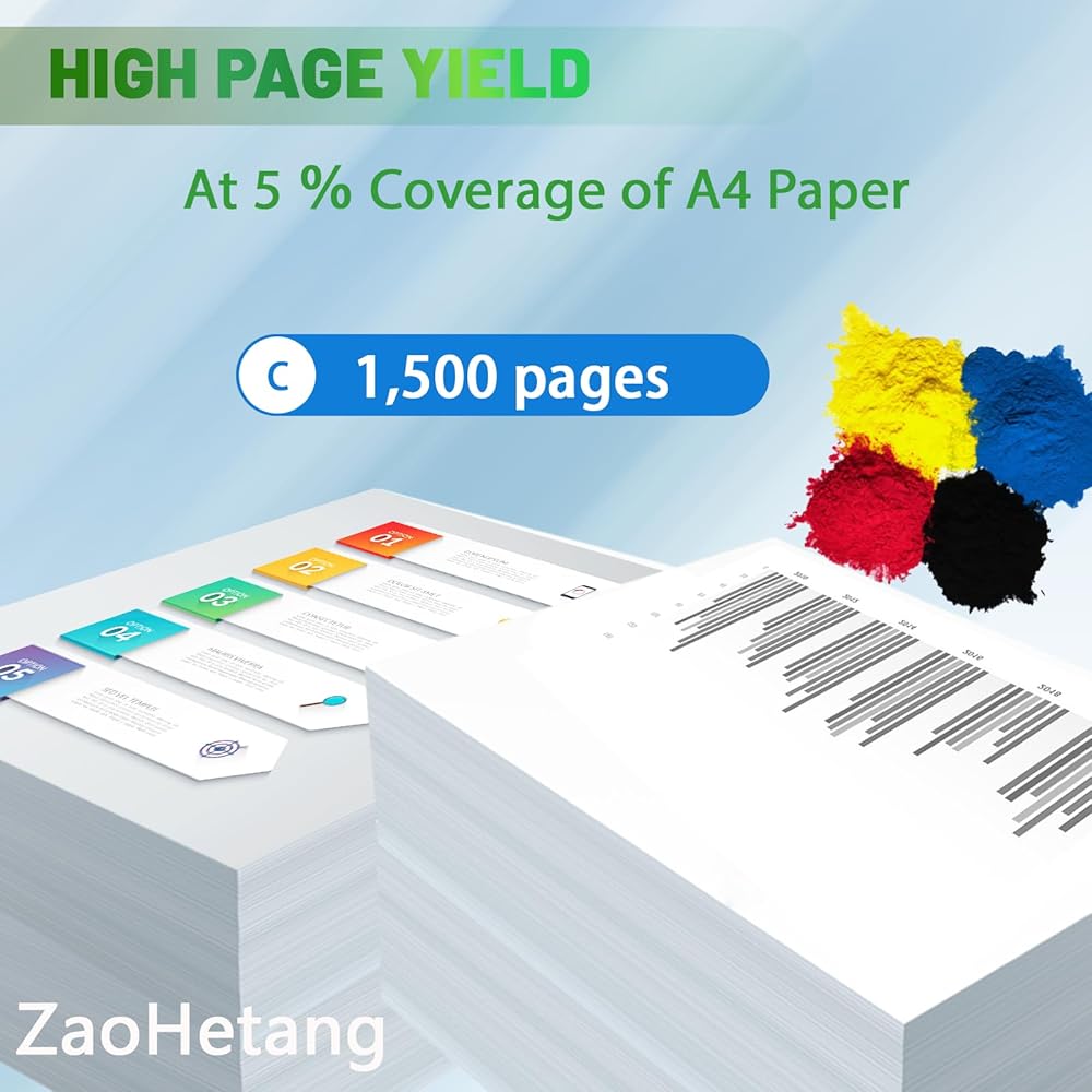- Page yield: 1,500 pages per yellow toner cartrdges 5% coverage