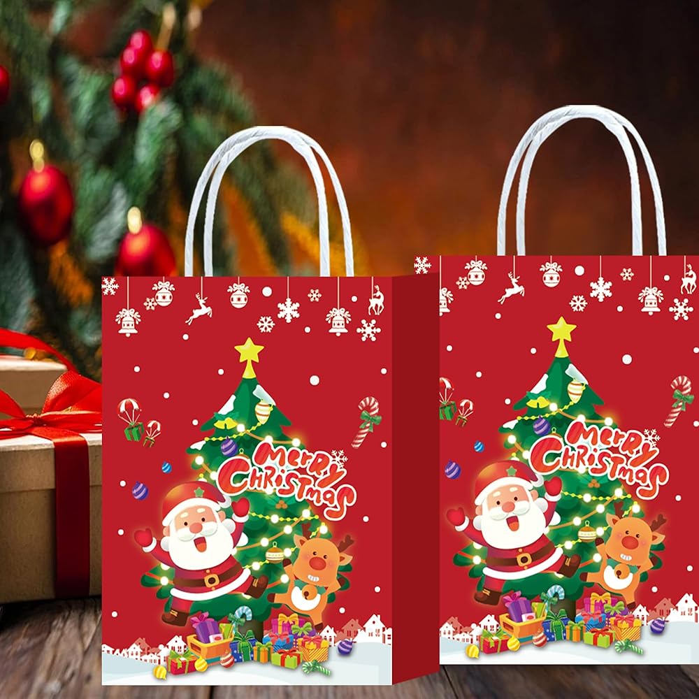 【Quality Material】These Christmas paper bags are made of 120g kraft cardboard quality paper, reliable and sturdy, can be adopted many times, Christmas gift bags come with handles, easier to carry and give gifts, ideal gift wrap bag for Christmas parties, family gatherings, gift stuffing.