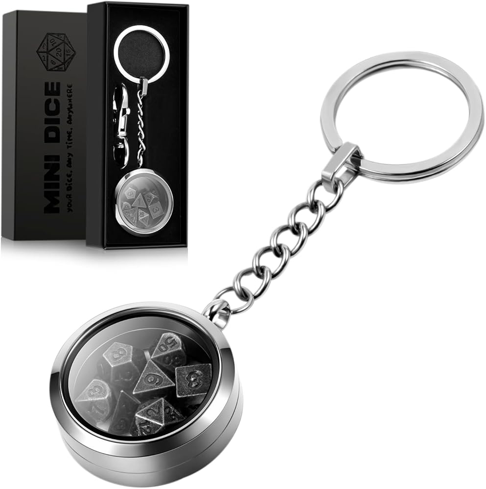 Mini Metal Dice Set:One set mini dnd dice total 7 pcs including D4, D6, D8, D10, D12, D20,% with Stainless steel Case.