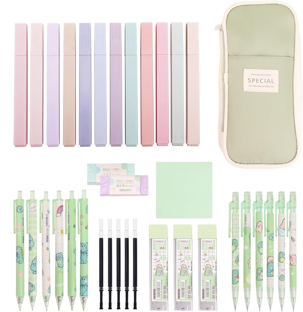 Versatile School Supplies: This 37-piece set includes 12 colorful pastel highlighters, 6 cute mechanical pencils, and 6 black gel pens, perfect for students and creative individuals alike