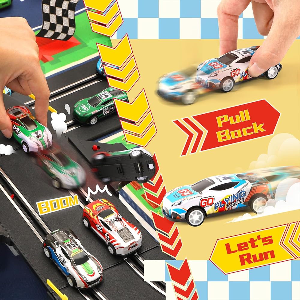 No Batteries Required: These pull back cars are powered by a simple and fun pull back mechanism. Just pull them back and release, and the vehicles will move smoothly across the floor, providing endless fun for children to race and play indoors