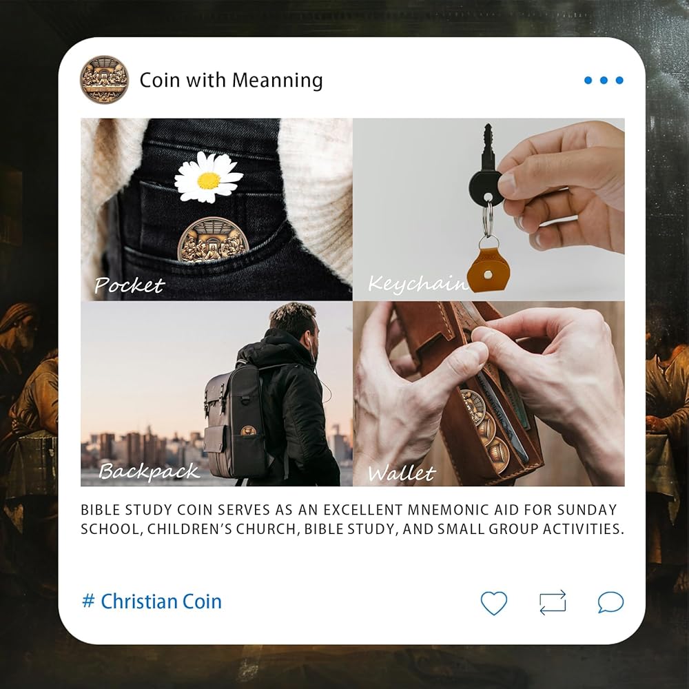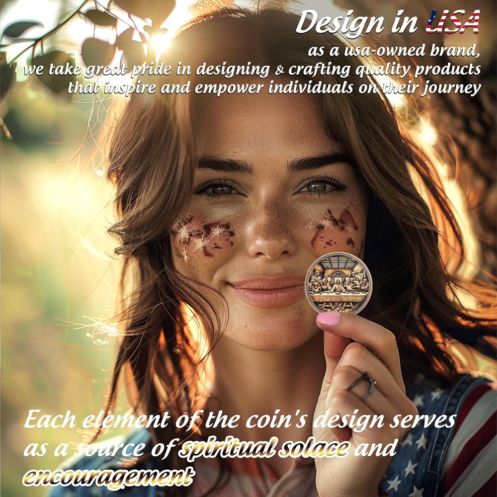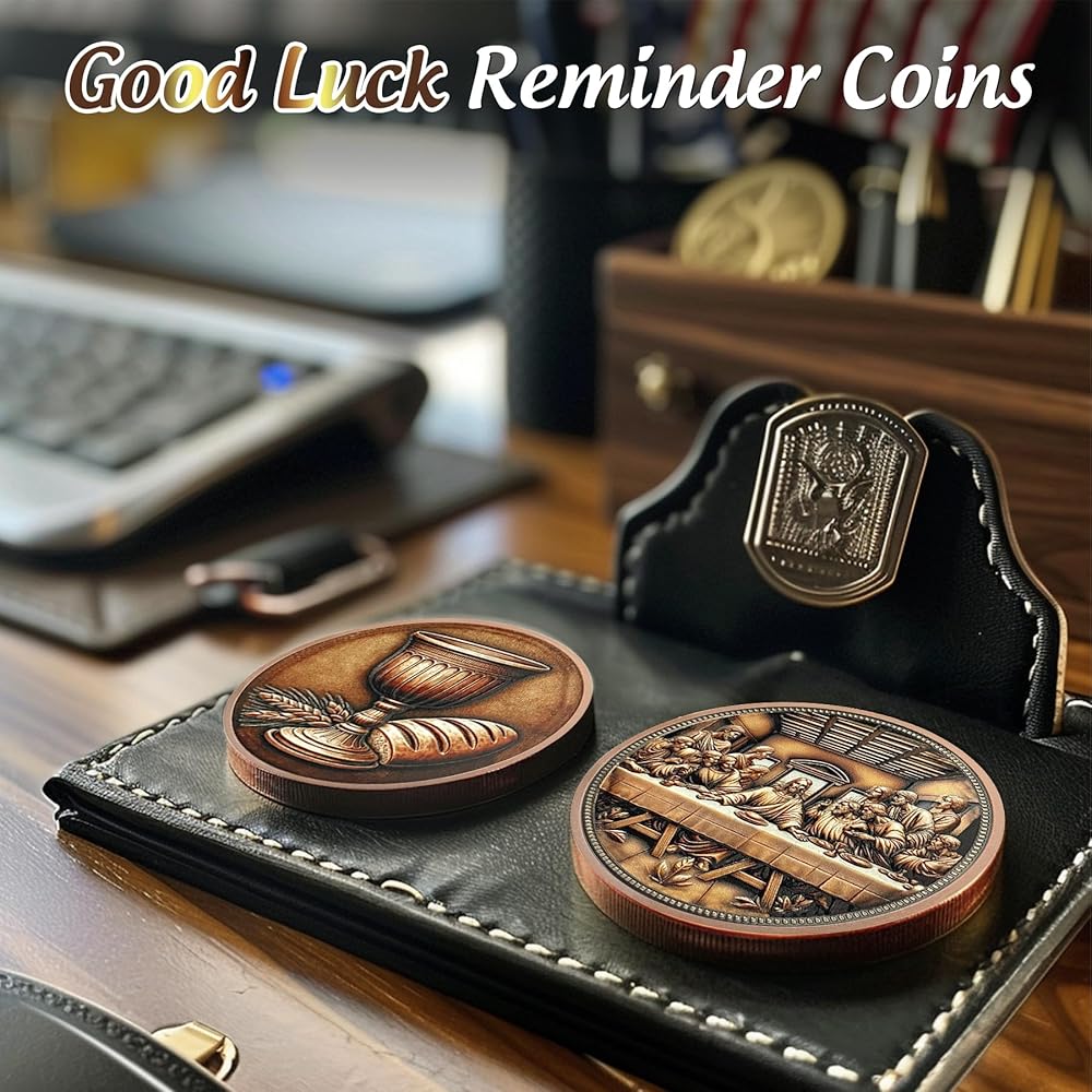 The Last Supper Christian Challenge Coin - Jesus Eucharist Religious Copper Token - Art God Pocket Bible Verses Coins for Study - Good Luck Commemorative Gifts for Men Women Kids