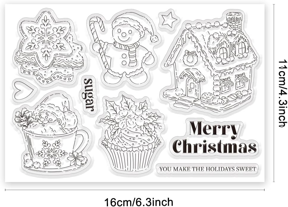 CHRISTMAS STAMPS: You will get 1 set Christmas theme clear stamp in this package. Including snowflake cookies clear stamp, snowmen clear stamp, Christmas house clear stamp, coffee clear stamp, cupcake clear stamp, and so on, transparent Christmas-themed stamps can help you make different handicrafts and bring you more joy.