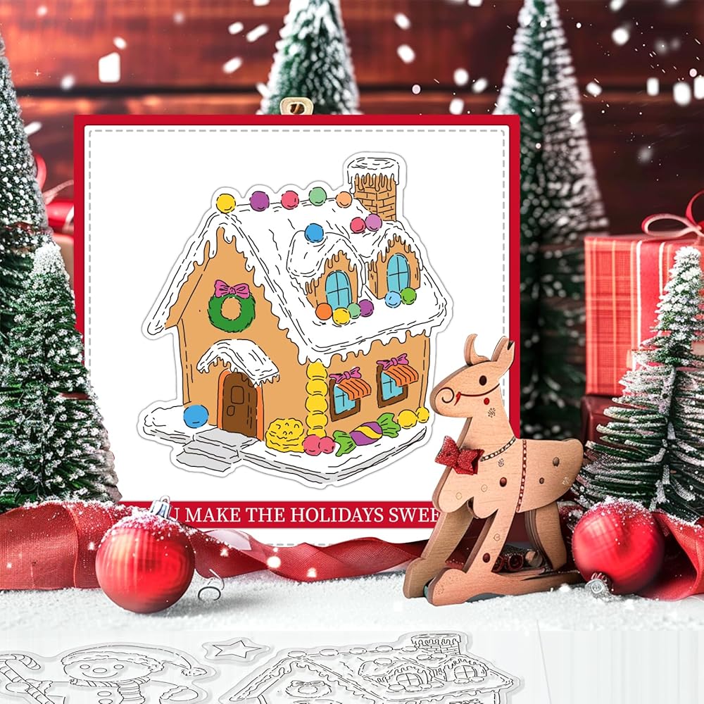 Christmas Clear Stamps for Card Making Snowflake Snowman Cake House Silicone Stamps for DIY Scrapbooking Christmas Themed Transparent Stamp for Paper Craft Photo Album Holiday Card Supplies