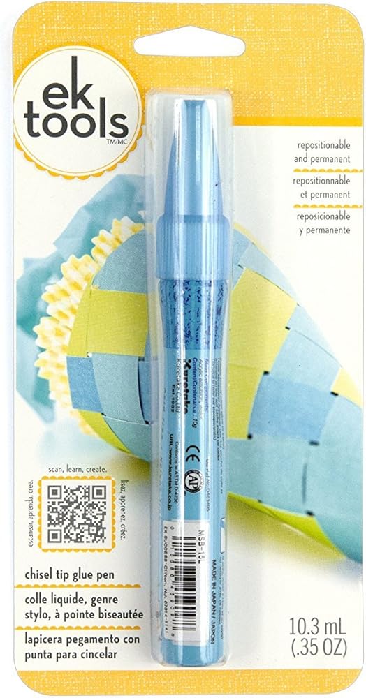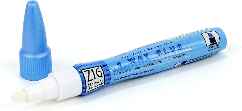 Perfect for any paper craft, the EK Tools Zig Memory System Chisel Tip Glue Pen offers permanent, repositionable bonds. It turns blue and becomes transparent when dry. Acid and xylene free. Non-toxic. Includes 1 pen, 10ml (0.35 ounce).