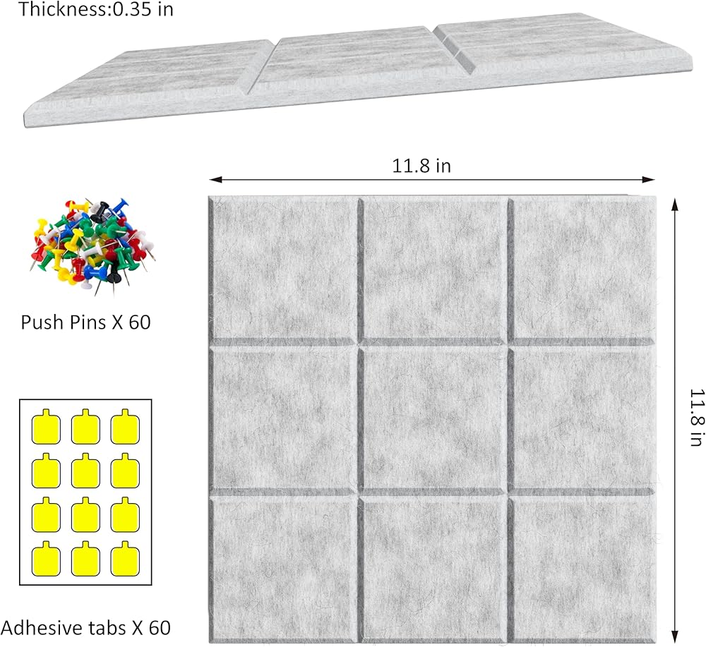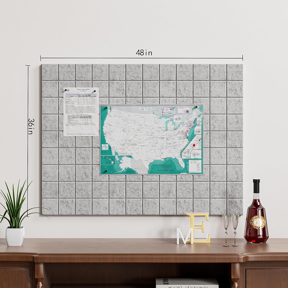 📌Large Cork Board/ Cork Tiles Alternative -Ditch cork's dullness. The rich texture of felt of cork boards for walls adds a contemporary elegance and subtle sophistication. Each panel of cork board for office measures 11.8" x 11.8", 6 pack 0.35" thick high-density felt panels easy to customize to any size you need. 36" x 24", 48” x 36”, 72” x 48”, 96” x 48” etc. This bulletin board contains 30 push pins so you can unleash your creativity and personalize your felt wall instantly.