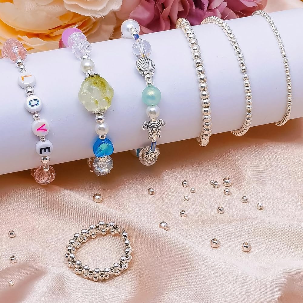 TIPS -- the loose beads with 1mm hole so that they fit the thickness of cords, thread and chains less than 1.0mm. You can use shiny and eye-catching silver beads to design beautiful gifts to your friends or family on Valentine's Day, Mother's Day, Thanksgiving, Christmas.